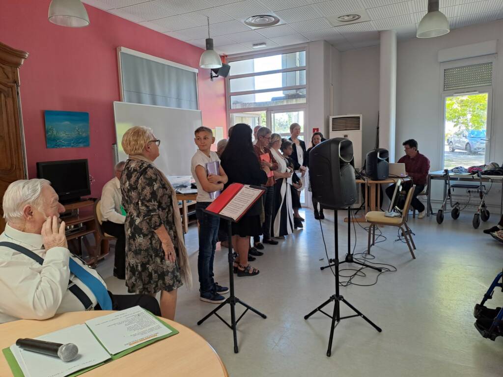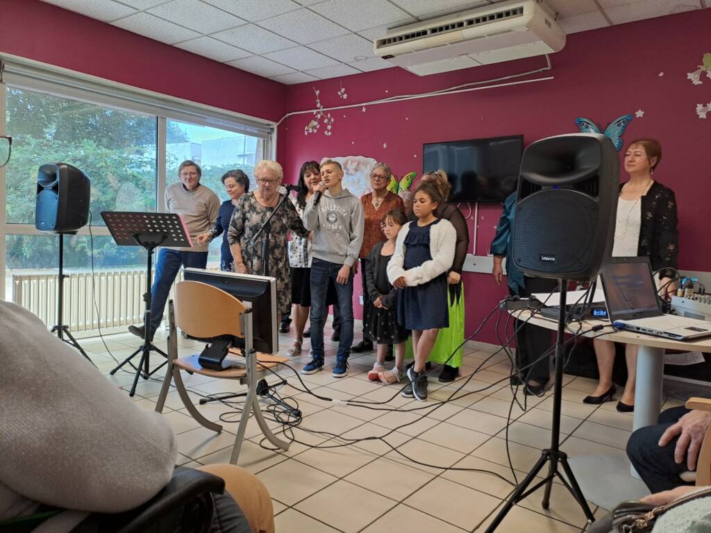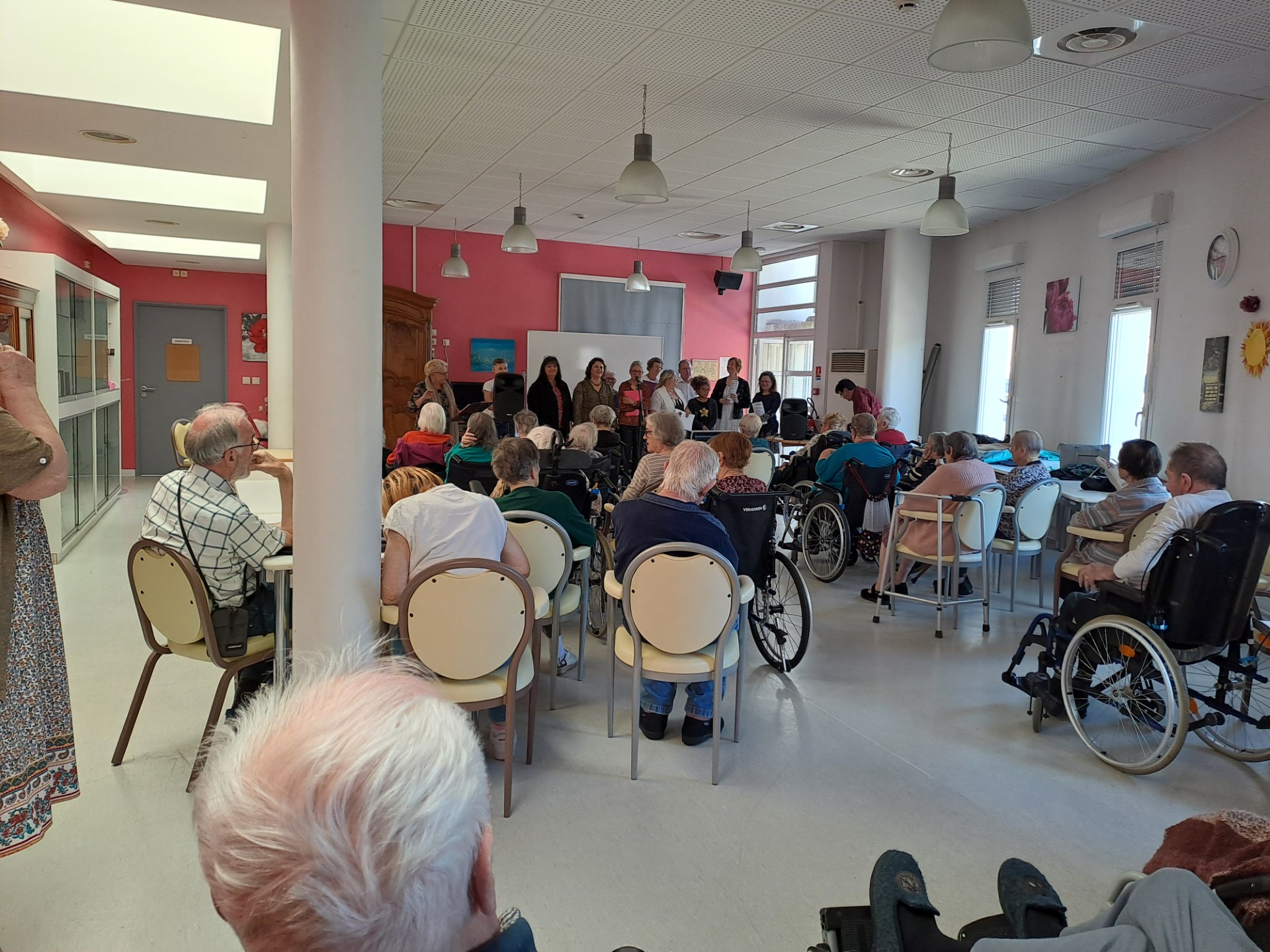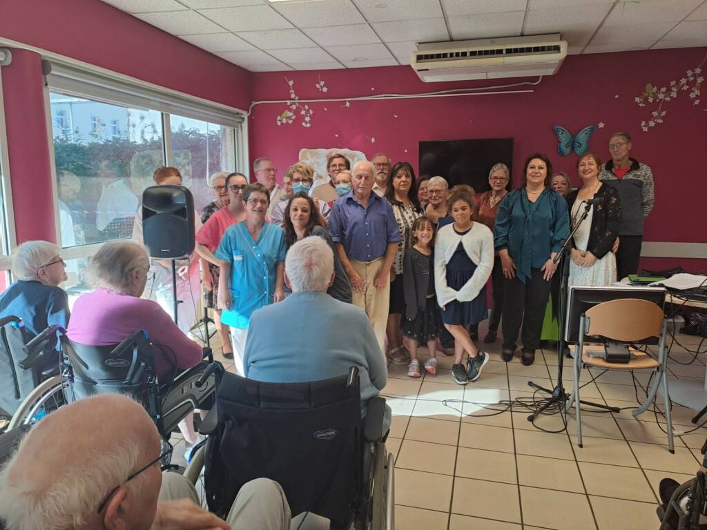 Un grand moment de partage avec la Compagnie HERSE IV pour une heure de chansons dans le cadre de la semaine bleue avec les résidents de l’Ehpad » Les Lys » et » Les Glycines » à Montceau-Les Mines.