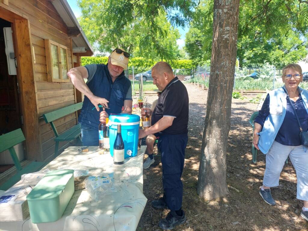 En ce samedi 24 mai 2025, ils ont délaissé les outils pour arriver les mains chargées de bonnes victuailles et autres liquides pour les accompagner avec modération.