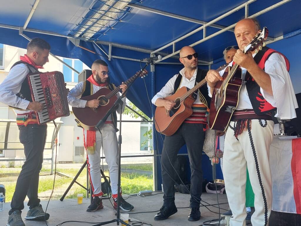 Ce dimanche, le parvis des Ateliers du Jour à Montceau-les-Mines s’est transformé en un véritable carrefour culturel entre la Bourgogne et la Calabre. Dans le cadre du jumelage entre Montceau-les-Mines et les villages calabrais d’Aquaformosa, Lungro et Firmo, la ville a accueilli une délégation chaleureuse composée de trois groupes représentant chacun des villages. La veille, la délégation calabraise avait été reçue à l’hôtel de ville par le premier adjoint, Gérard Gronfier.