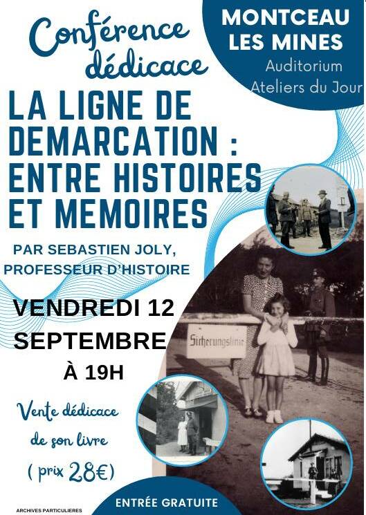 Sébastien Joly sera aux ADJ de Montceau-les-Mines, vendredi 12 septembre 2025 où il donnera une conférence sur le sujet et dédicacera son livre : La ligne de démarcation : entre histoires et mémoires, à 19h.