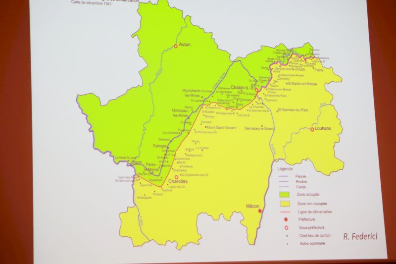 La ligne de démarcation, ici en Saône-et-Loire, a littéralement fendu le département en deux (voir la carte). Elle traversait treize départements. Montceau-les-Mines, d’abord coupée en son centre, finira tout entière en zone occupée après un nouveau tracé.