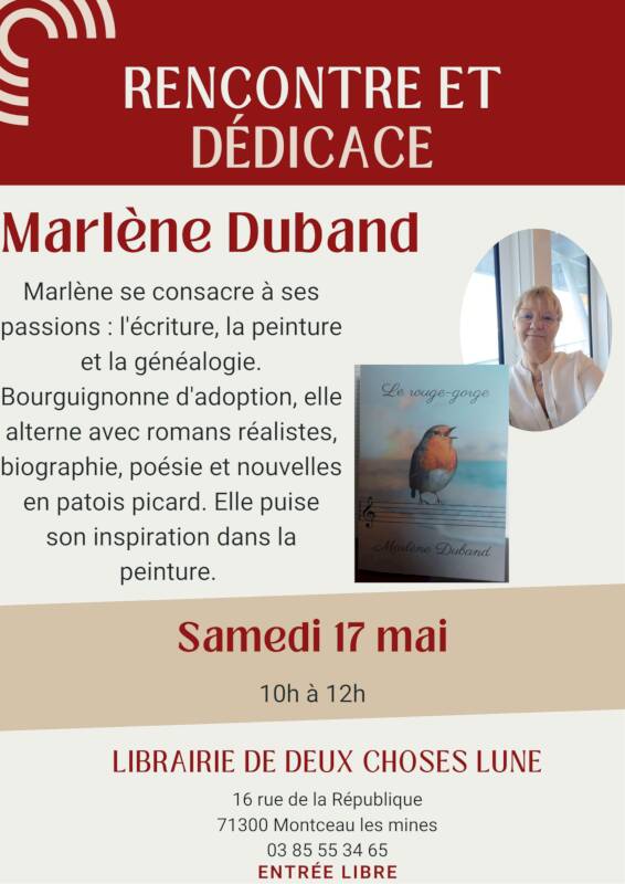 [Rencontre et dédicace] avec Marlène Pidérie-Joncart