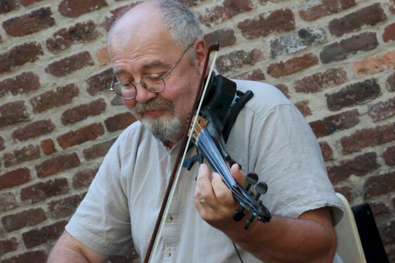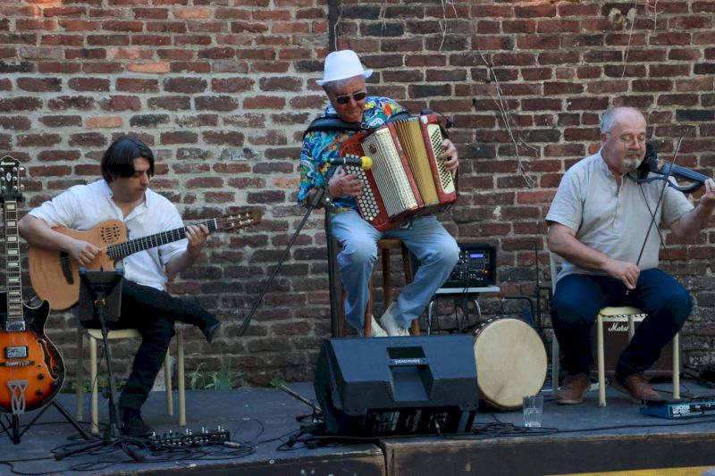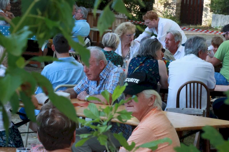 À l’accordéon, Bob menait la danse avec une aisance teintée de nostalgie, faisant vibrer les airs d’antan comme un souffle venu des bords de Marne. À ses côtés, Alex au violon apportait une touche poétique, ses notes glissant dans l’air comme un murmure tendre. Pascal à la guitare posait les harmonies avec délicatesse, tandis que Denis à la batterie donnait le tempo, discret mais essentiel, comme le battement d’un cœur en fête.