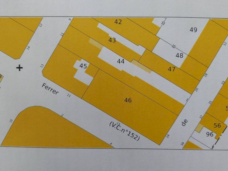 Mais pour accéder au pan de mur effondré _ impossible par la rue Ferrer _ les engins de chantier n’ont d’autre choix que de passer par la cour (tènement 44 du plan cadastral), propriété de la SCI Matignon.