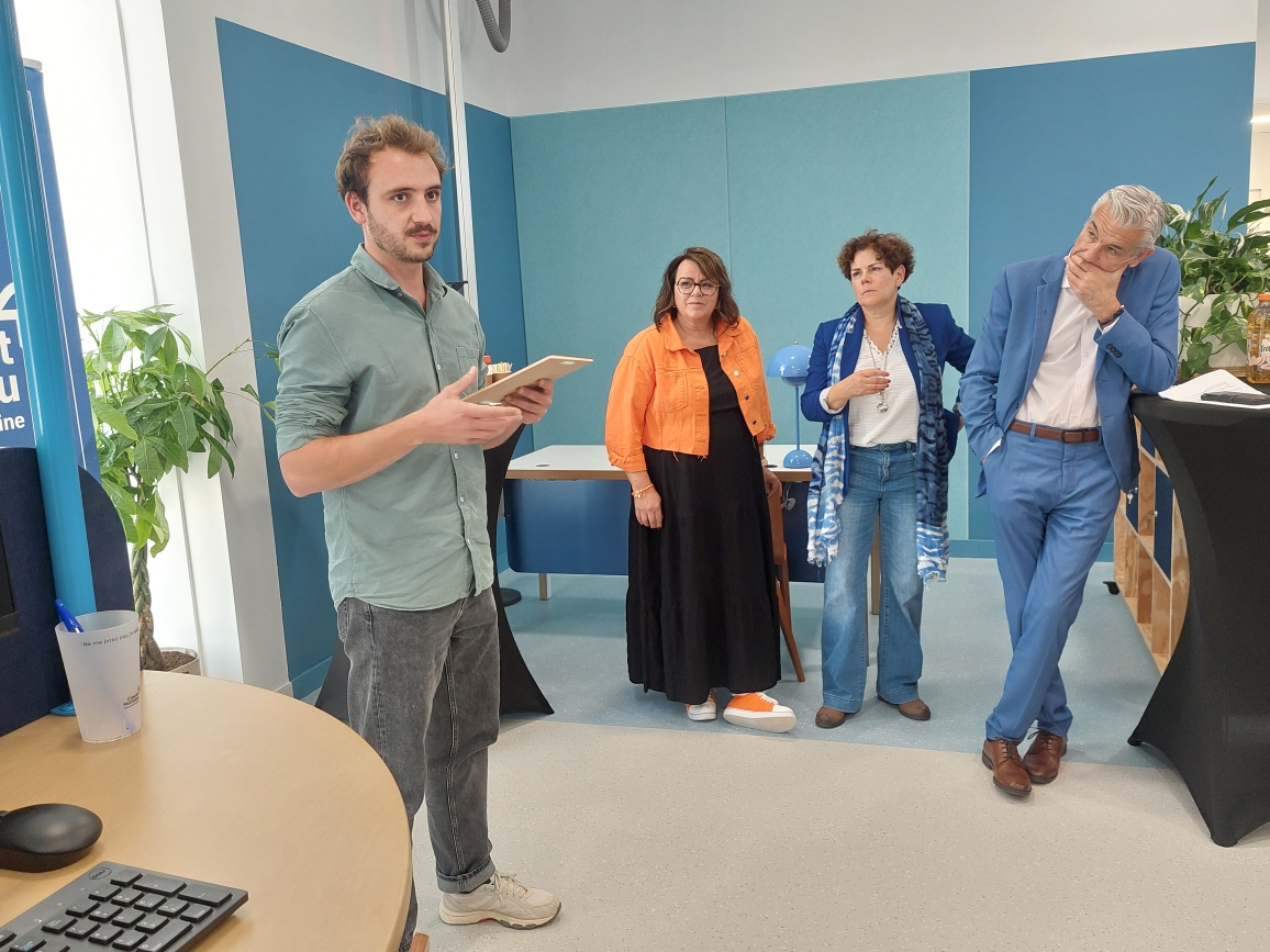 Valentin, concepteur du nouvel espace d’accueil situé au rez-de-chaussée des bureaux de la CUCM, aux Ateliers du Jour de Montceau-les-Mines, est davantage designer qu’orateur, surtout après l’intervention du président, David Marti.