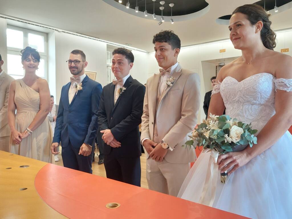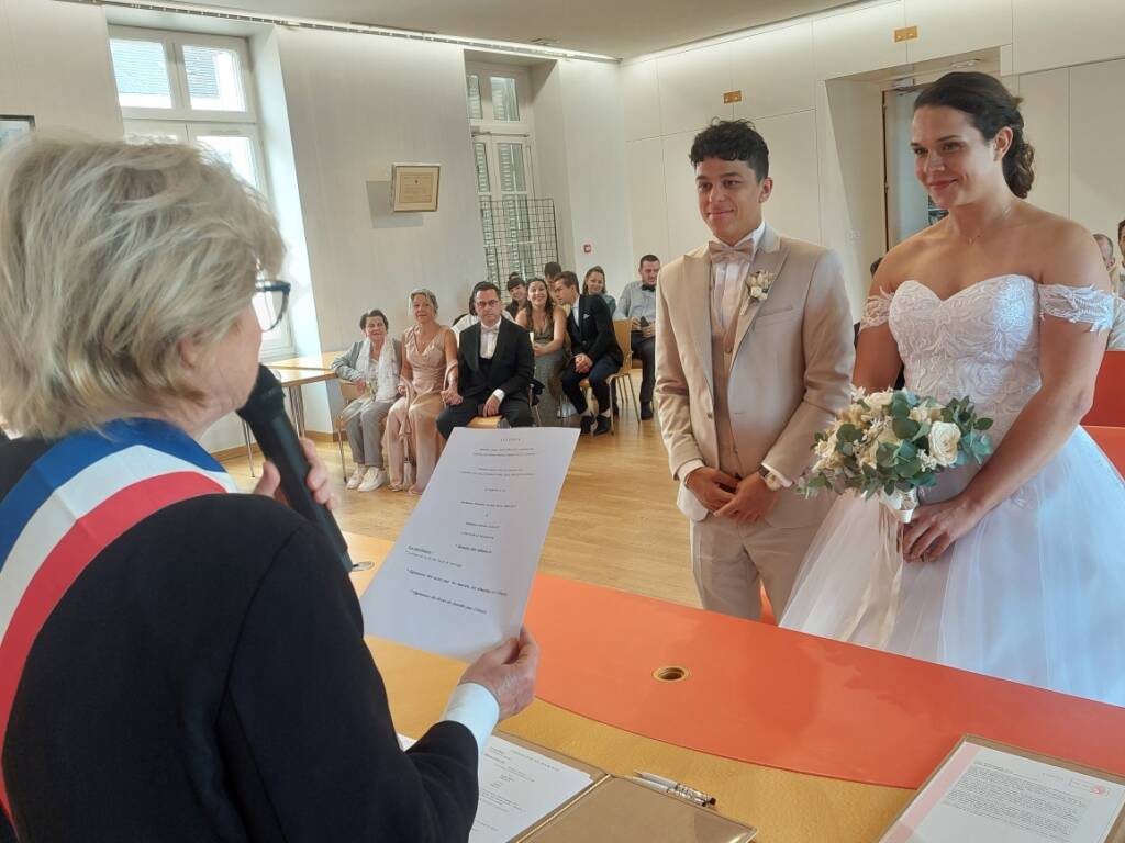 Laureen Jaillet, enseignante en activités physiques adaptées, née à Paray-le-Monial le 28 mars 1996 et Jordan Abrazian, électricien, né à Lyon le 12 décembre 1996 _ ils sont domiciliés à Saint-Rambert-en-Bugey _ , se sont dit « oui » samedi après-midi à l’hôtel de ville de Montceau-les-Mines sous le regard de madame le maire et un choeur d’applaudissements des familles et amis.