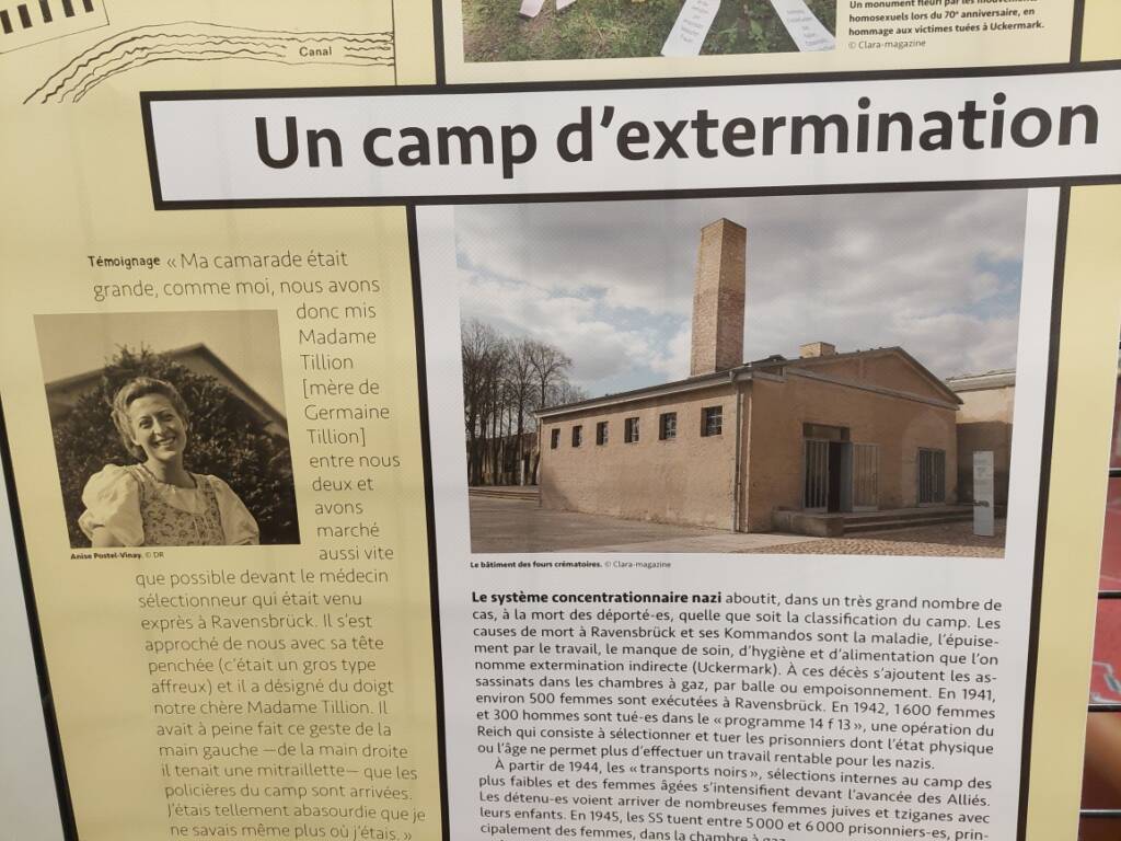 Cette exposition a été réalisée par Femmes Solidaires et son magazine CLARA. Chaque année d’ailleurs, l’association participe à la cérémonie officielle de la libération du camp des femmes de Ravensbrück.