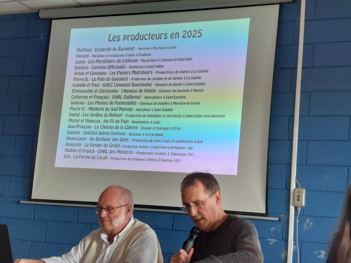 A l’assemblée générale qui s’est tenue à la salle polyvalente du centre nautique de Montceau-les-Mines, le président, Fabrice Florent, est revenu sur les résultats de 2025 : 19 producteurs, 75 adhérents, 27 264 € de produits commandés soit une moyenne de 363 € par adhérent. « Nous espérons toujours mieux même si nous allons au devant des gens », dit il. « Nous sommes stables dans le nombre des adhérents qui connaît néanmoins du turnover ».