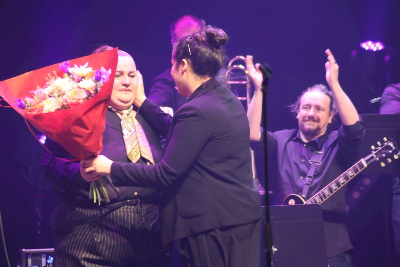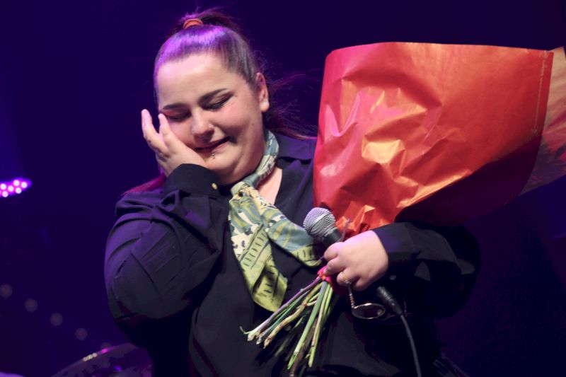 Quelques minutes plus tôt, la salle tout entière retenait son souffle. Jeanne venait d’offrir une reprise vibrante de James Brown, avant d’interpréter « Une sorcière comme les autres » de Anne Sylvestre, ce texte puissant dédié à la condition féminine. Comme saisie d’un frisson collectif, l’assemblée s’était laissée traverser par la force des mots et par cette voix qui semblait porter bien plus qu’une chanson. Depuis 1975, cette œuvre est l’une des plus lumineuses de notre patrimoine musical, phare pour toute une génération et ce soir-là, elle brillait de nouveau, portée par Jeanne.