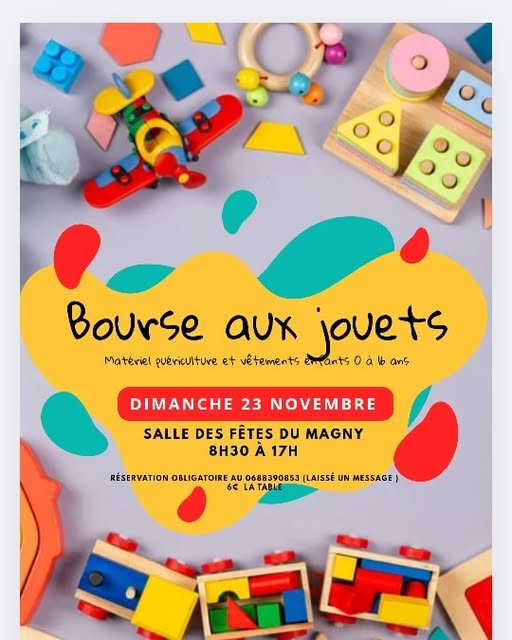 L’association des parents d’élèves de l’école des Oiseaux de Montceau-les-Mines organise dimanche 23 novembre 2025 à la salle des fêtes du Magny, une bourse aux jouets, matériel puériculture et vêtements enfants de 0 à 16 ans de 8h30 à 17h.