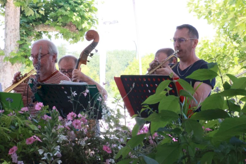 Samedi matin, le marché vibre déjà sous un soleil curieux. Entre les étals d’épices et les paniers d’abricots, une ombre bienvenue s’étend sous le kiosque, où Jazzomanie installe ses gammes.