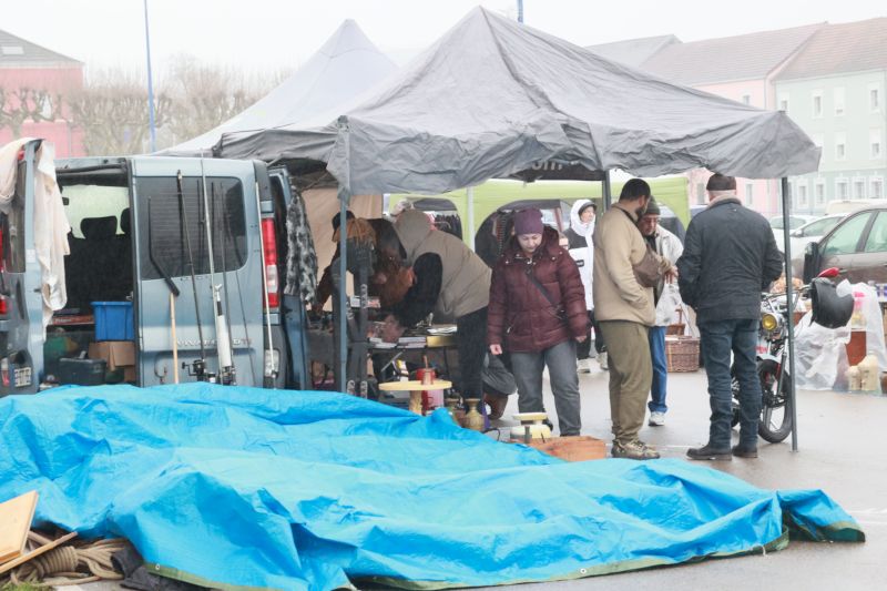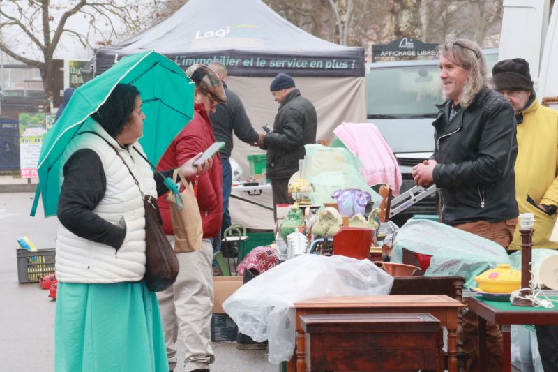 Hélas, vers 11h, la pluie a fait son apparition, les parapluies aussi, compromettant la suite du marché aux puces.