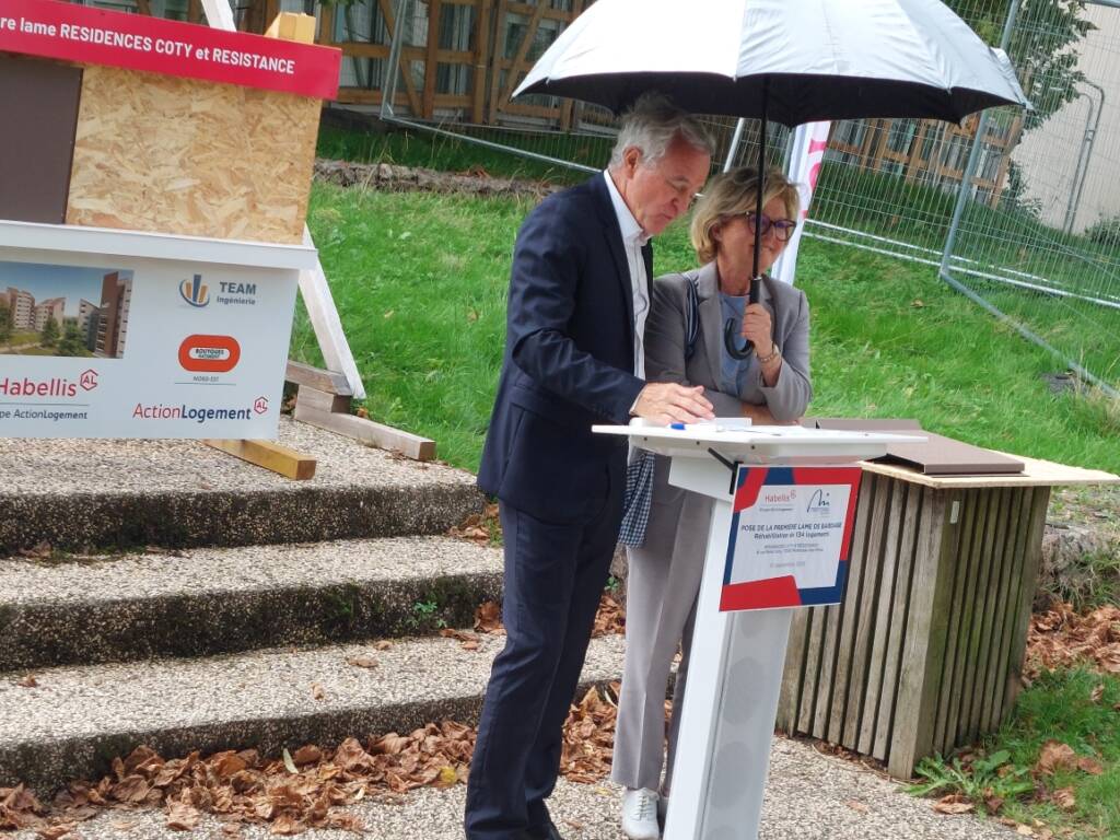 Lundi après-midi, Jean-François Buet, président d’Habellis Bourgogne – Franche-Comté et madame le maire, ont symboliquement posé la première lame de bardage, lançant officiellement les travaux. Prévue sur 18 mois, cette réhabilitation vise une étiquette énergétique DPE C, avec une réduction moyenne de 30 % des consommations de chauffage.