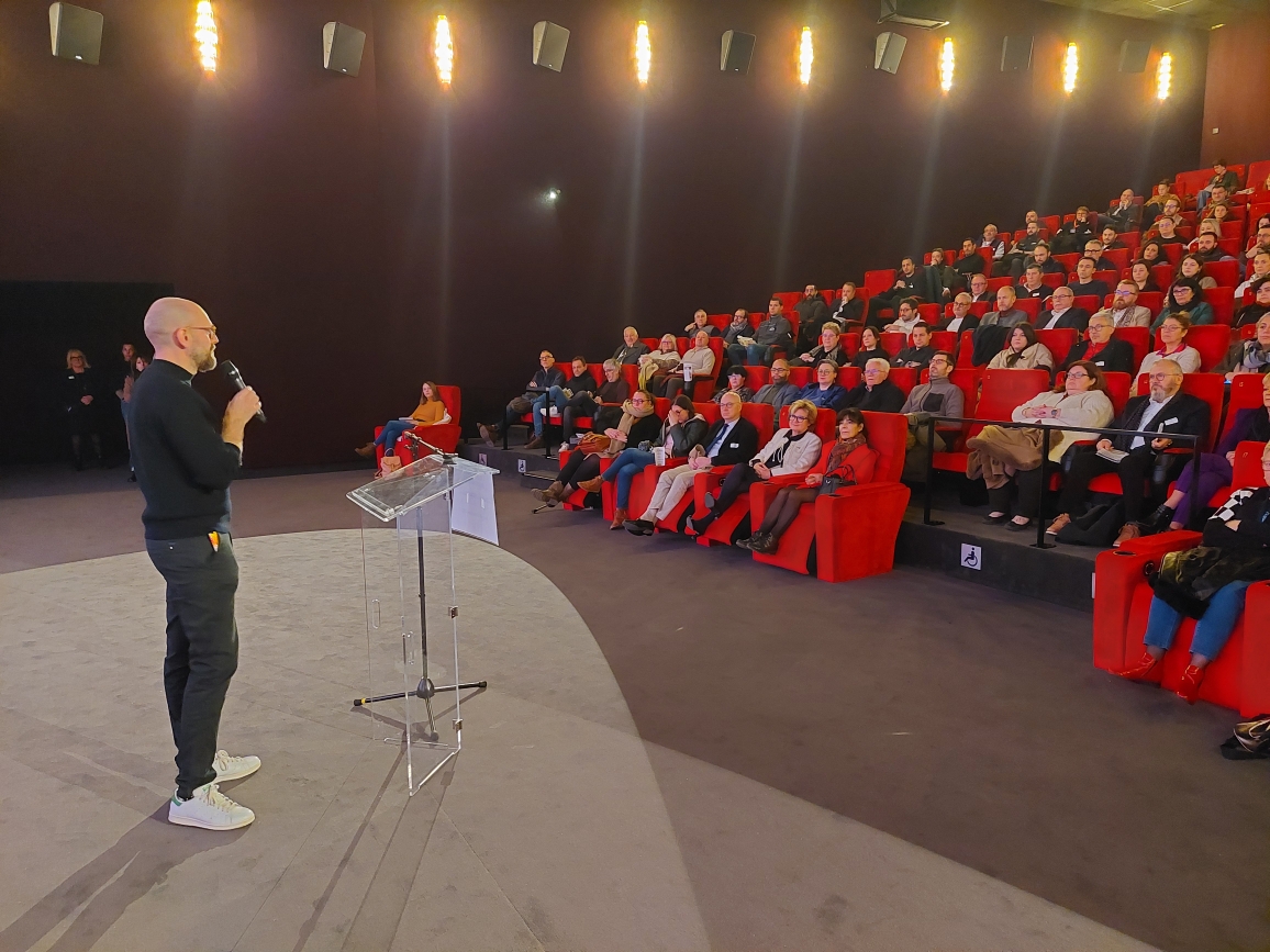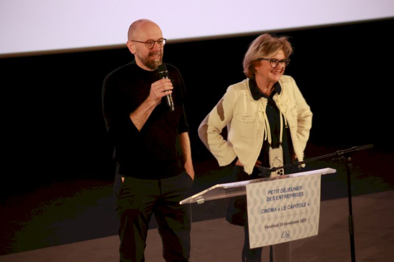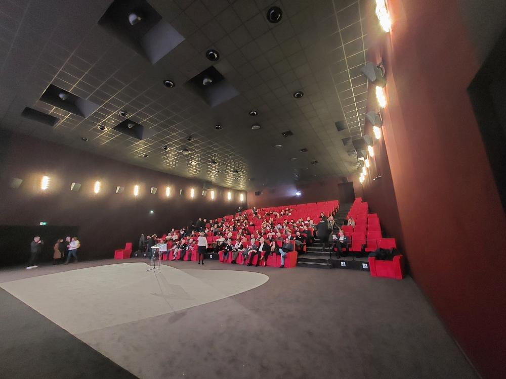 Ce 56ᵉ petit-déjeuner des entreprises avait un parfum d’émotion. Contre vents et marées, les obstacles ont été franchis un à un. « Avec Régis Faure, nous sommes allés chercher les financements partout, même auprès du CNC, qui a fortement soutenu le projet et auprès de la Région, malgré les critères d’éco-conditionnalité », rappelle Marie-Claude Jarrot. Matériaux biosourcés, toiture photovoltaïque, récupération de l’eau de pluie… rien n’a été laissé au hasard. Le tout avec un objectif majeur, le confort du spectateur.
