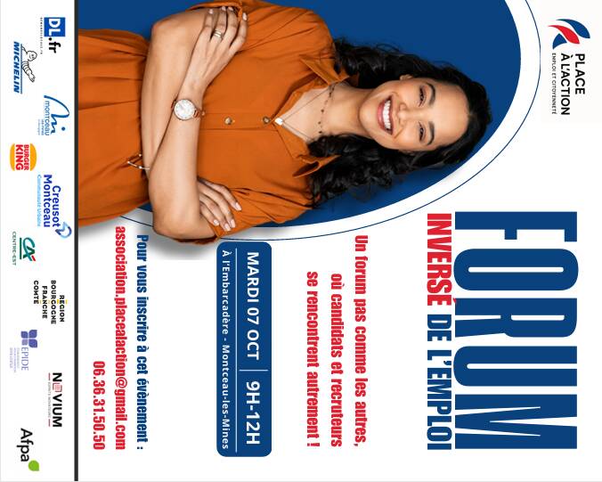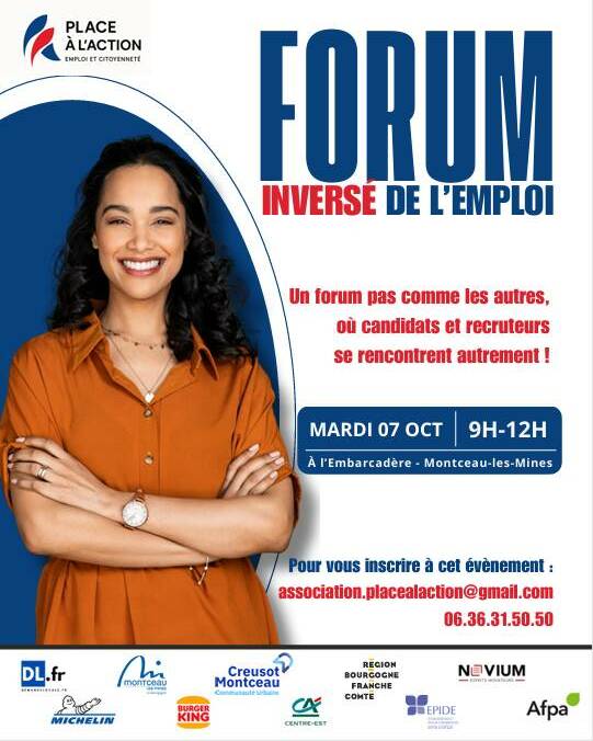 Le forum inversé de l’emploi, mardi 7 octobre 2025 à l’Embarcadère de Montceau-les-Mines, de 9h à 12h.