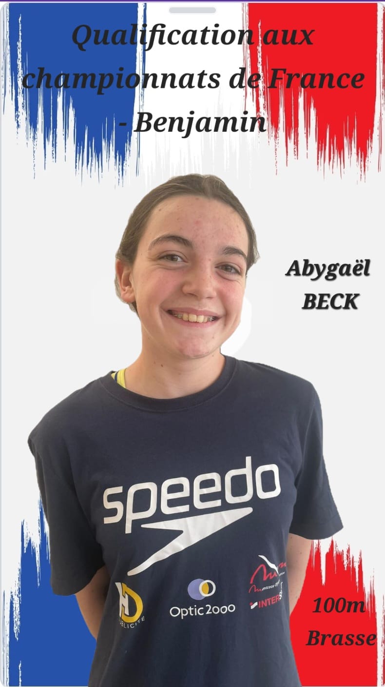 Le club est particulièrement fier d’Abygaël B. : grâce à une très belle performance sur le 100 m brasse (1.27.82), Abygaël se qualifie pour les Championnats de France à Dunkerque, qui auront lieu du 18 au 21 décembre.