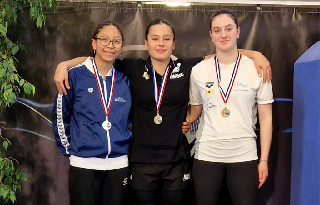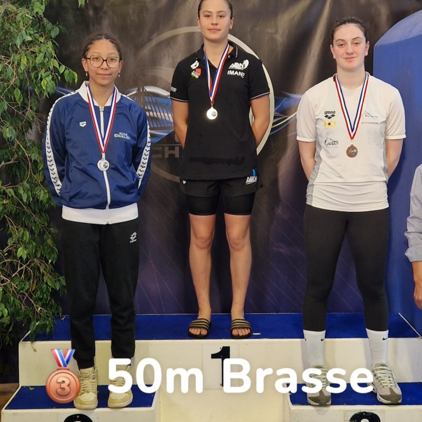 Maélie T. réalise 2 finales C 14/15ans sur le 50/100 BRASSE, elle monte sur le podium juniors 14/15ans (3ème) au 50 BRASSE après avoir gagné sa finale.