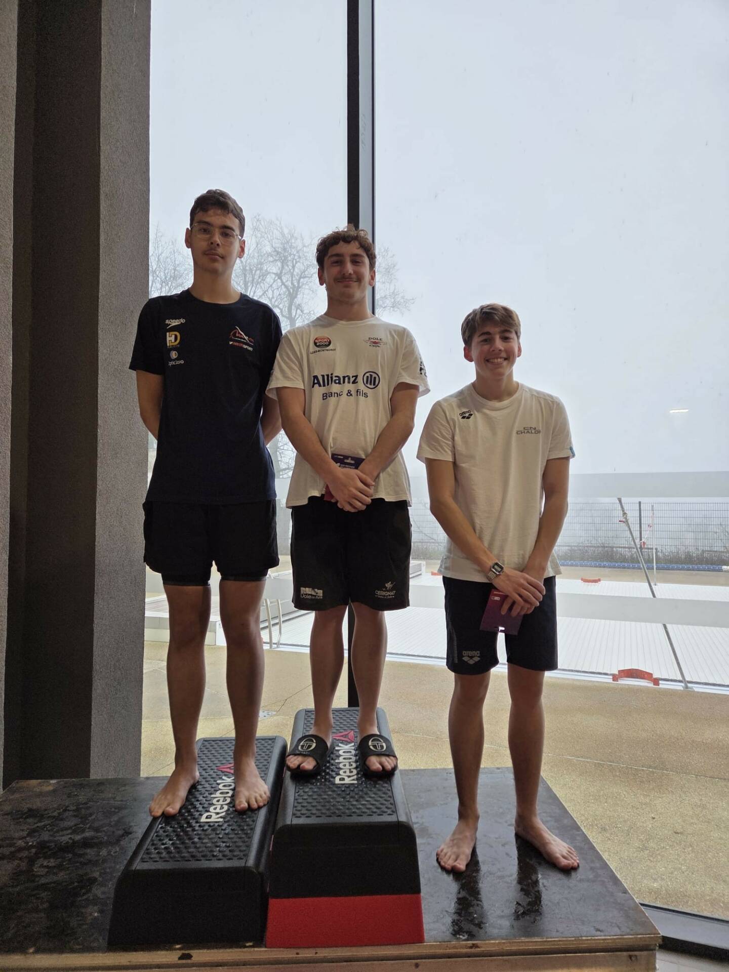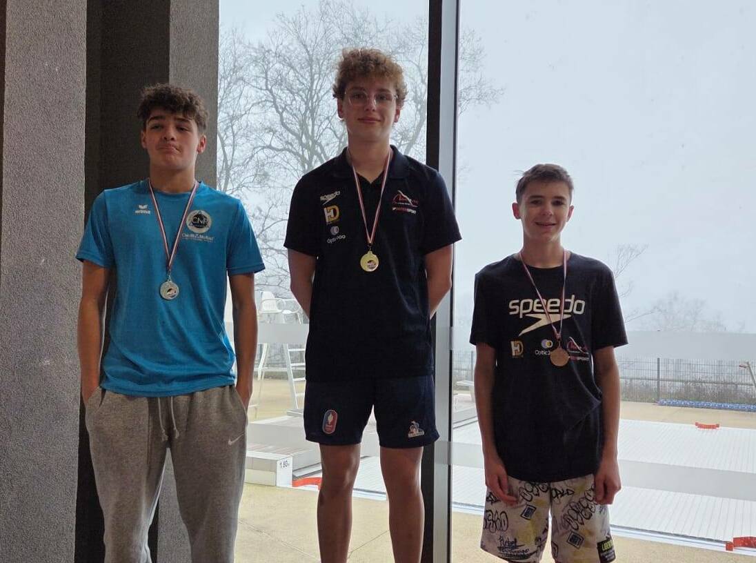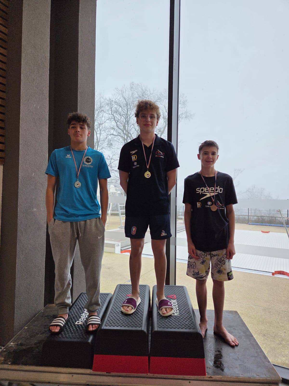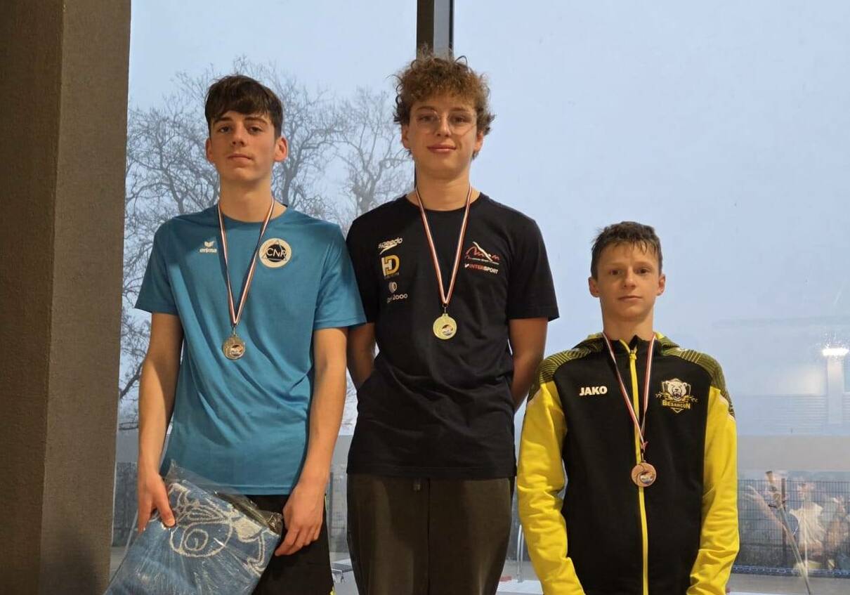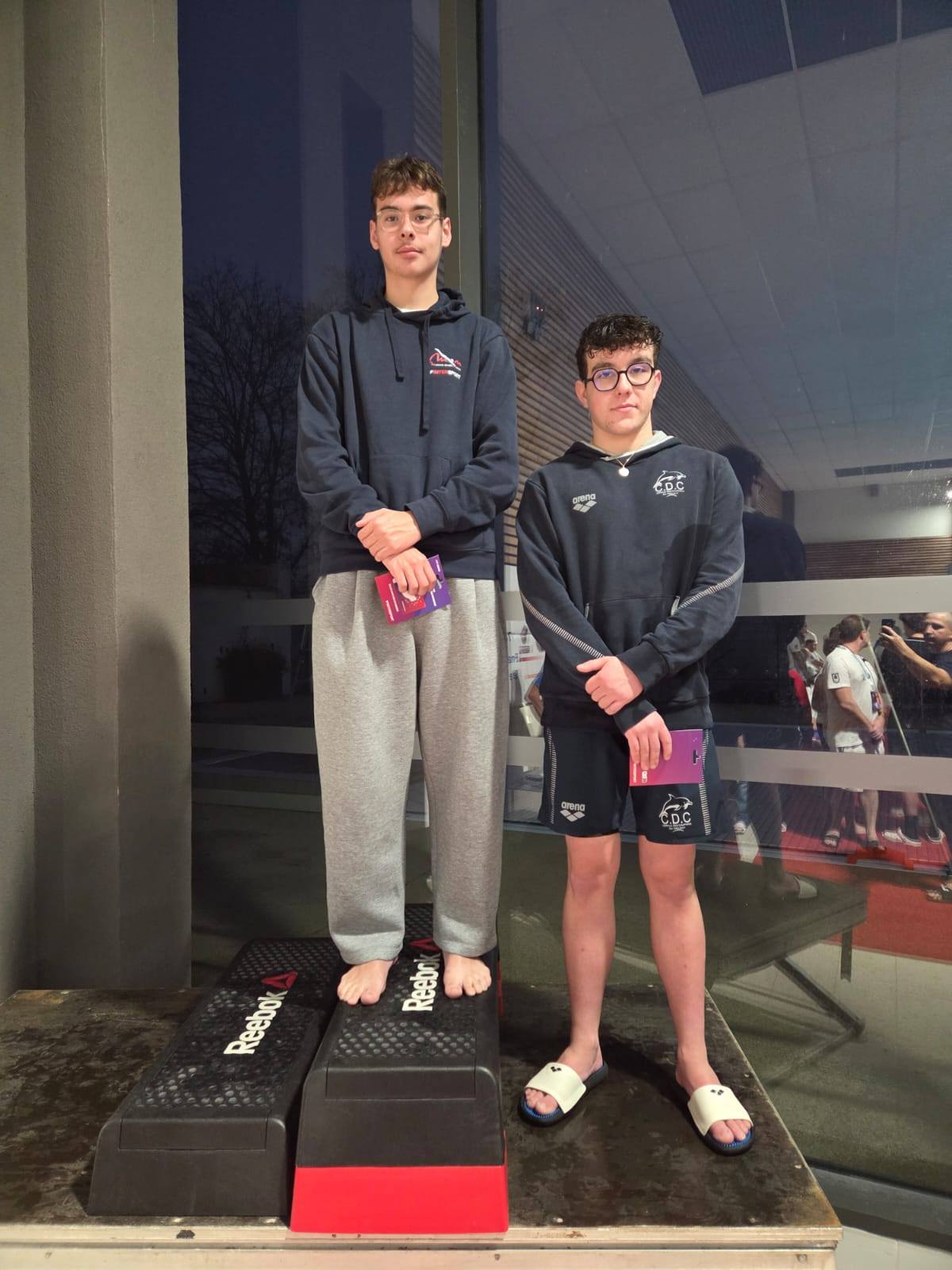 Anatole Saclier montre une vraie progression. Il remporte le 200 m brasse et s’impose également sur le 100 m brasse. Malgré un départ manqué sur cette course, il remonte progressivement tout le bassin pour finalement gagner largement, preuve de sa solidité et de son mental.