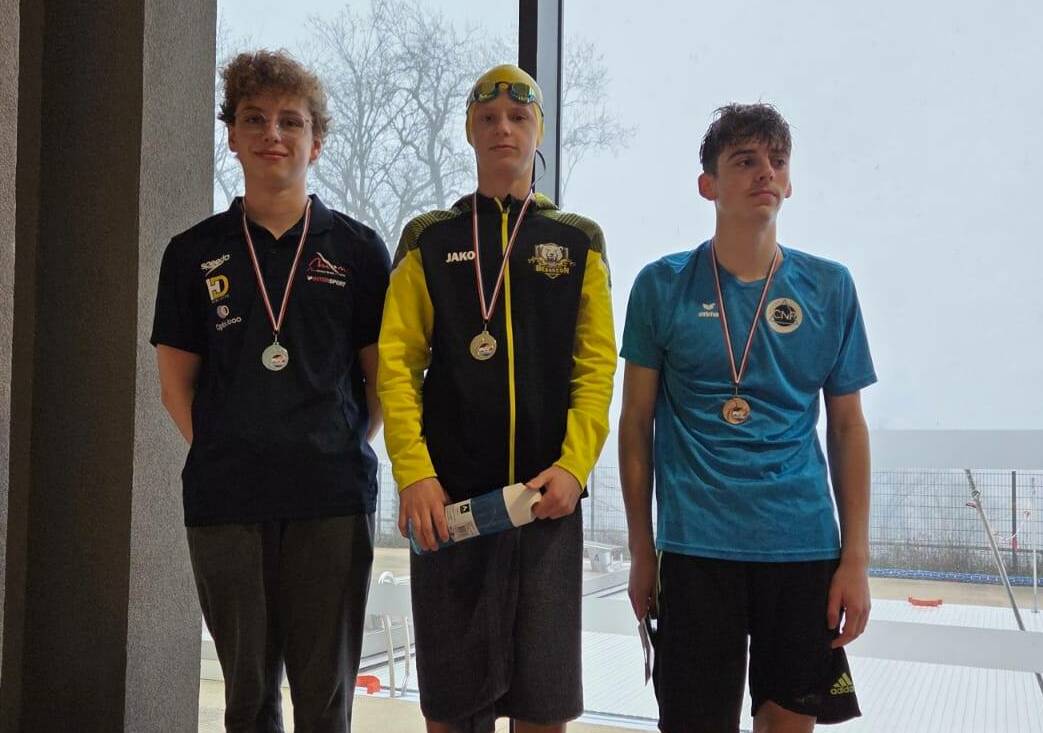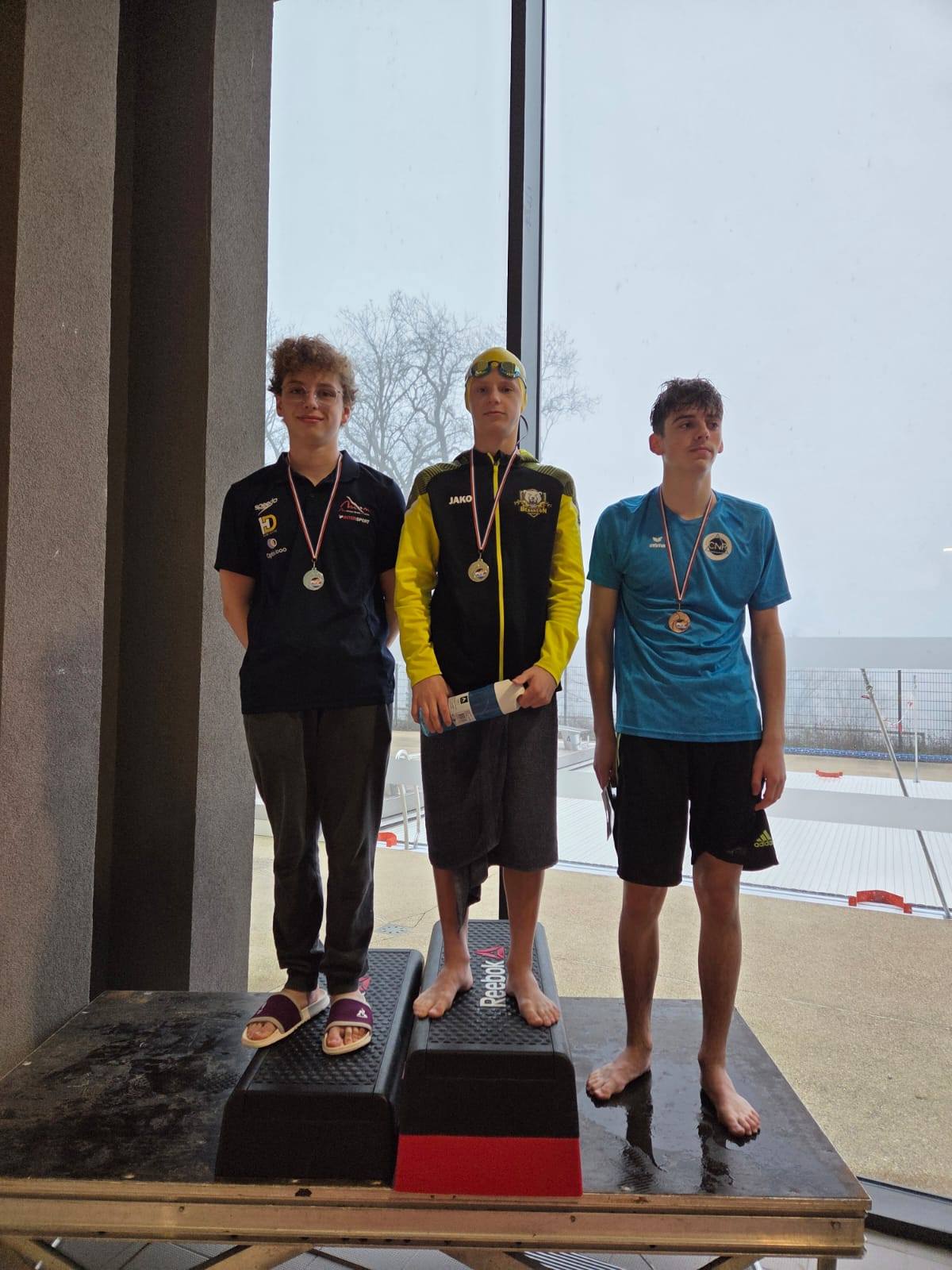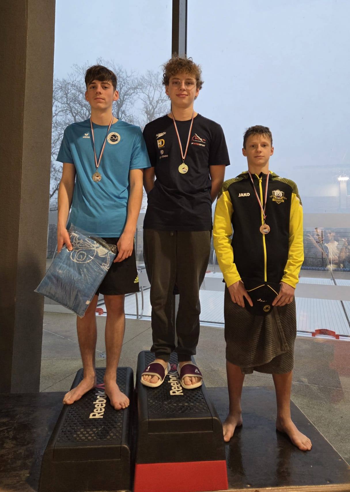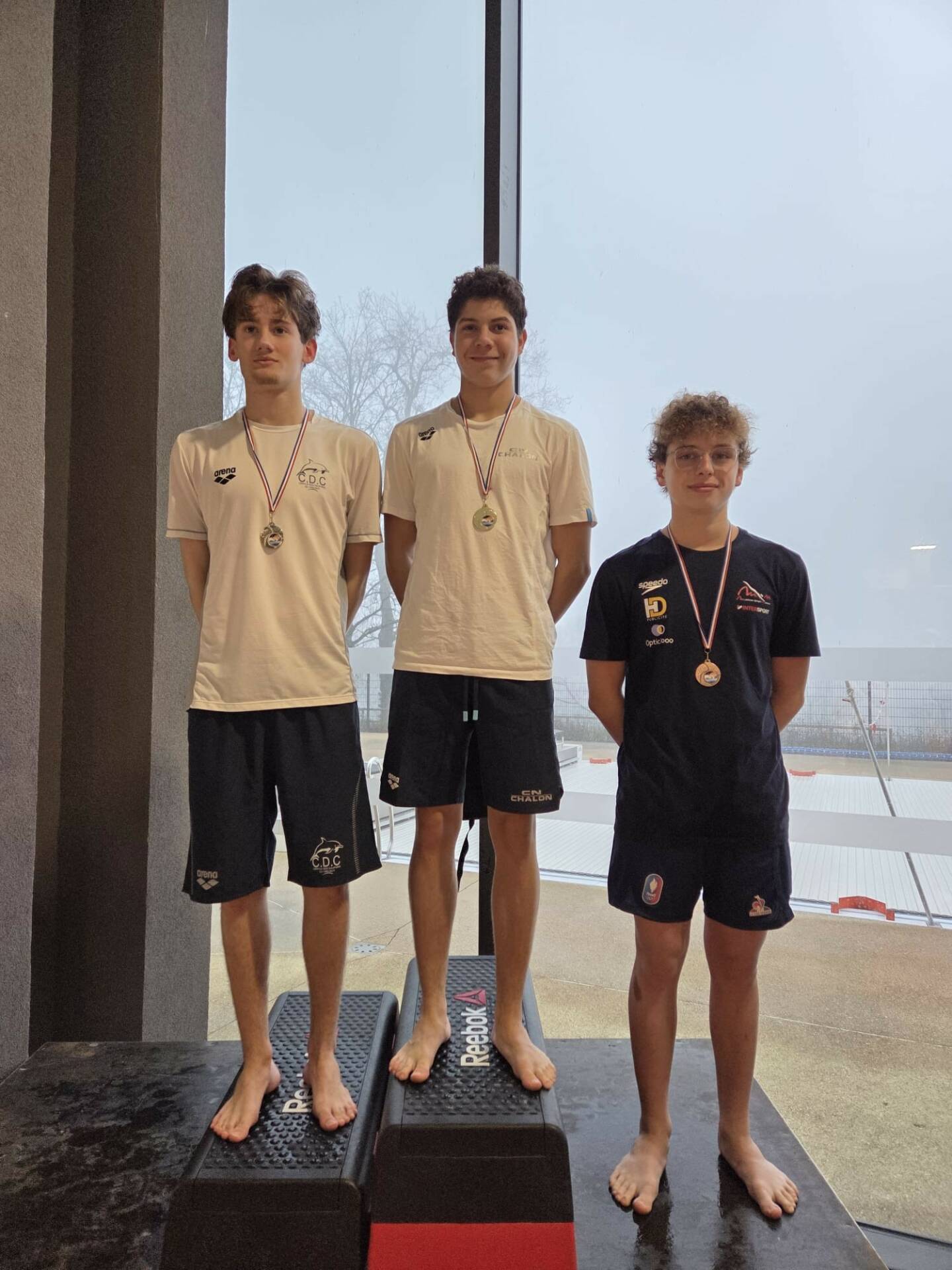 Anatole Saclier montre une vraie progression. Il remporte le 200 m brasse et s’impose également sur le 100 m brasse. Malgré un départ manqué sur cette course, il remonte progressivement tout le bassin pour finalement gagner largement, preuve de sa solidité et de son mental.