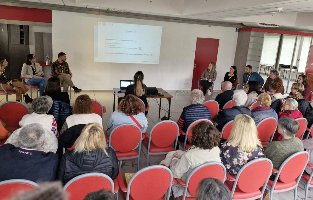 La conférence du Dr Gwendoline Dupont, neurologue au CHU François Mitterrand à Dijon, suivie d’une table ronde, a permis d’apporter des éclairages sur la maladie, ses impacts au quotidien et les solutions d’accompagnement existantes. Cette table ronde s’est appuyée sur le parcours réel d’un patient accompagné par l’équipe spécialisée maladie neuro-évolutives (EMNE) Amaelles 71, permettant d’illustrer de manière concrète les différentes étapes de la prise en charge. Cette approche a favorisé des interventions complémentaires des différents services et partenaires, en lien direct avec les réalités du terrain et des personnes accompagnées.