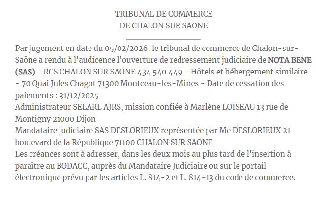 L’hôtel-restaurant situé quai Jules-Chagot, établissement montcellien emblématique, est en cessation de paiements depuis le 31 décembre 2025, non pas parce que le Nota Bene a perdu de la clientèle, loin de là, mais à cause du PGE, ces prêts lancés en 2020 pour soulager la trésorerie des entreprises fortement impactées par la pandémie de Covid, des prêts garantis par l’État.