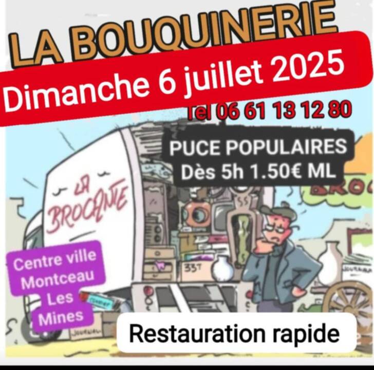 Eh ben oui ! dimanche 6 juillet 2025, comme c’est le premier dimanche du mois, José et la Bouquinerie organisent le traditionnel marché aux puces populaires sur les quais au centre-ville de Montceau-les-Mines.