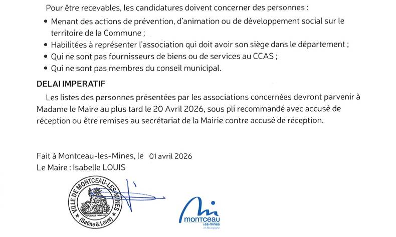 Madame le maire de la commune de Montceau-les-Mines informe :