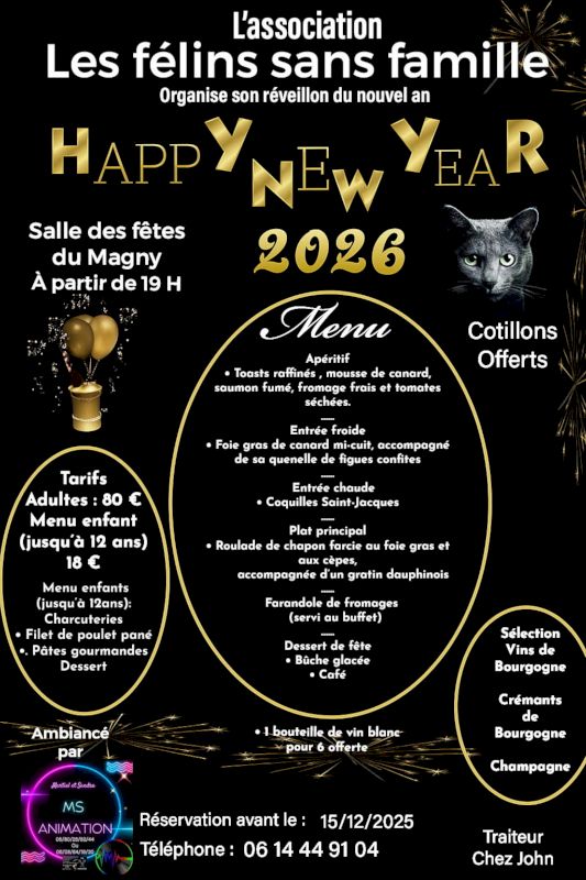 Rendez-vous à la salle du Magny de Montceau-les-Mines le 31 décembre pour une soirée inoubliable ou la bonne humeur et la fête seront au rendez-vous !