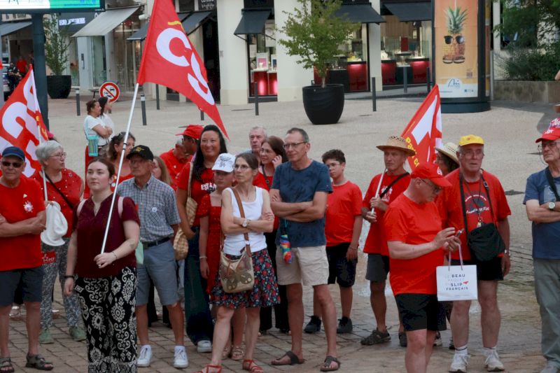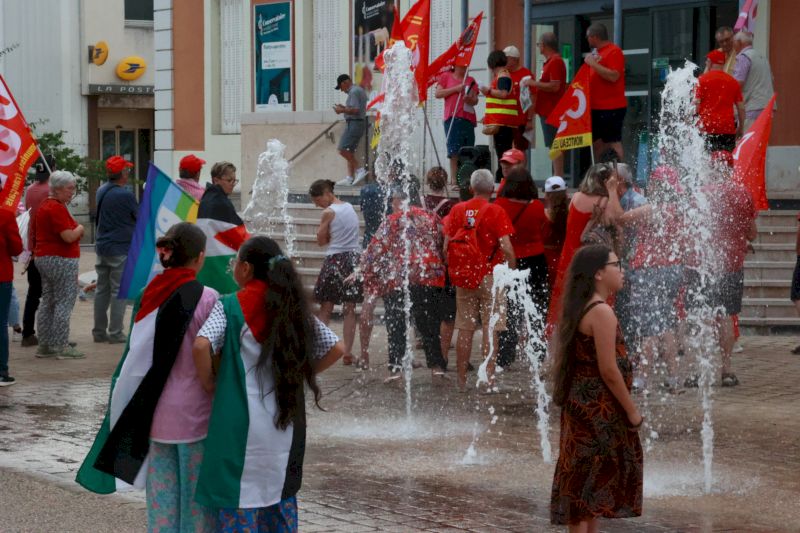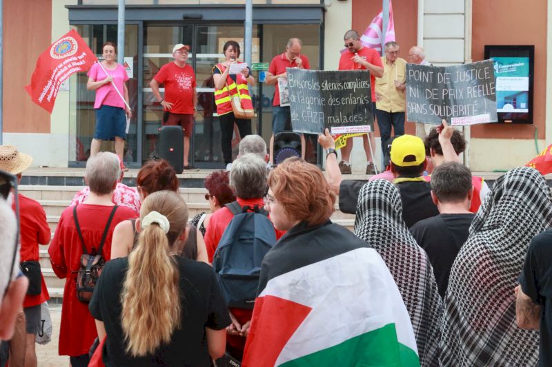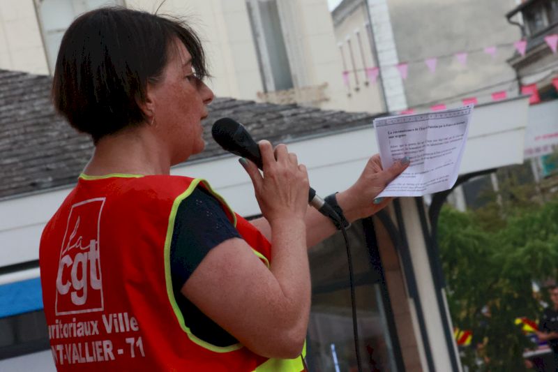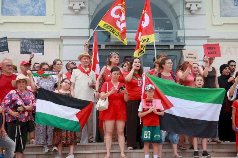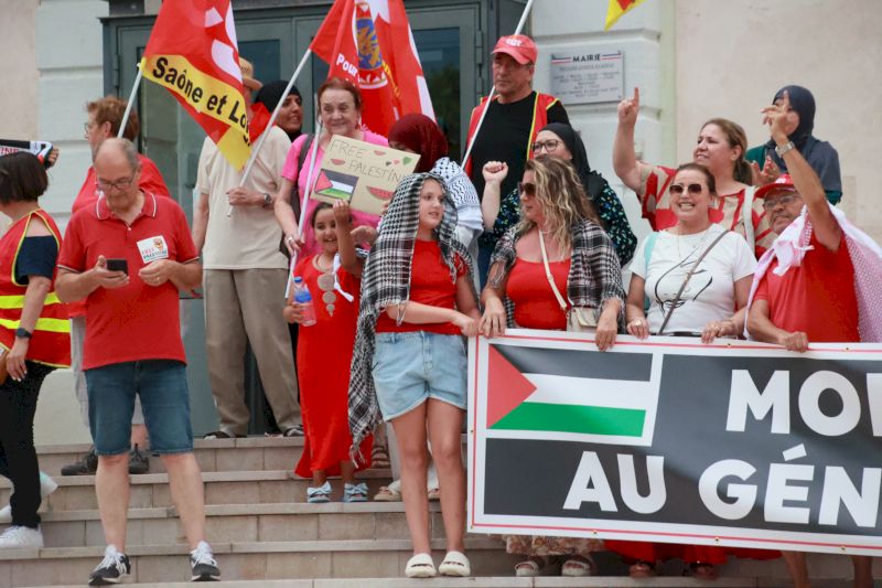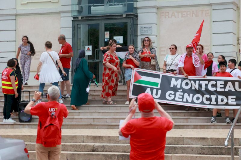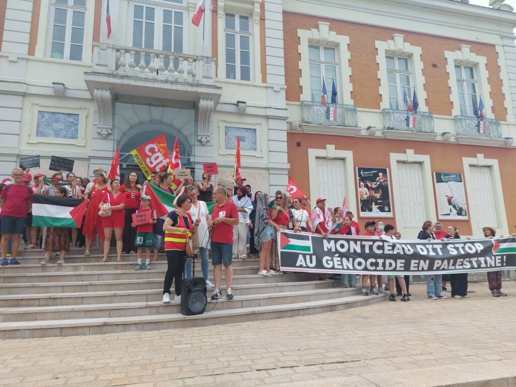 Toujours devant l’hôtel de ville, les manifestants ont crié « Israël assassin, Israël assassin », avant que Farida Benrabia, secrétaire de l’Union locale CGT de Montceau, n’intervienne : « L’humain n’est pas politique« , a-t-elle lancé devant les drapeaux du PCF et de LFI. « Mais qu’ils aillent manifester à Chalon-sur-Saône, ils verront comment ça se passe là-bas« , souffle un homme de passage devant le rassemblement.