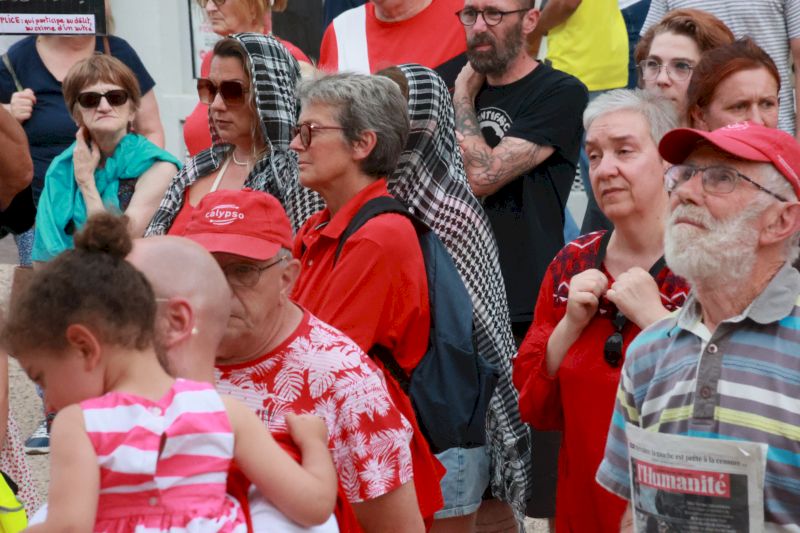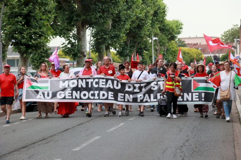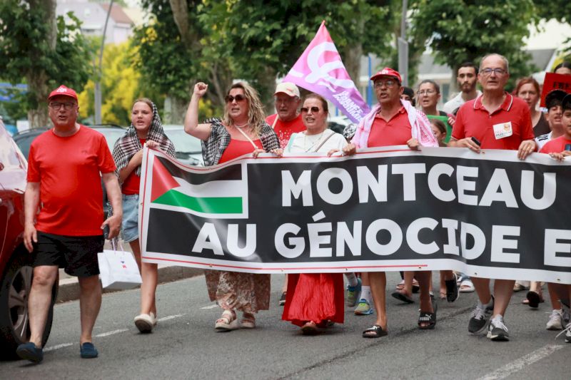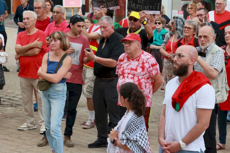 À l’appel de toutes les forces de gauche, et en premier lieu du Parti communiste, « le journal L’Humanité a consacré encore aujourd’hui cinq pages entières à la situation génocidaire en Palestine », souligne Christian Tramoy, sur le perron de l’hôtel de ville de Montceau-les-Mines. Vêtus majoritairement de rouge, ils sont venus affirmer que personne n’oublie Gaza, même si le sort des Gazaouis semble relégué dans l’ombre de la guerre contre l’Iran.