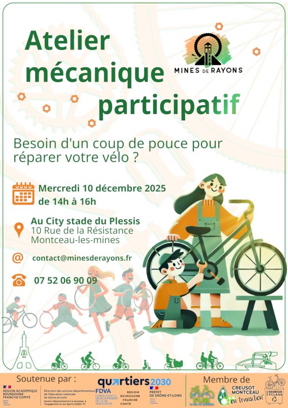 L’association Mines de Rayons organise un atelier mécanique participatif le mercredi 10 décembre 2025 de 14h à 16h au City Stade du Plessis, 10 Rue de la Résistance.