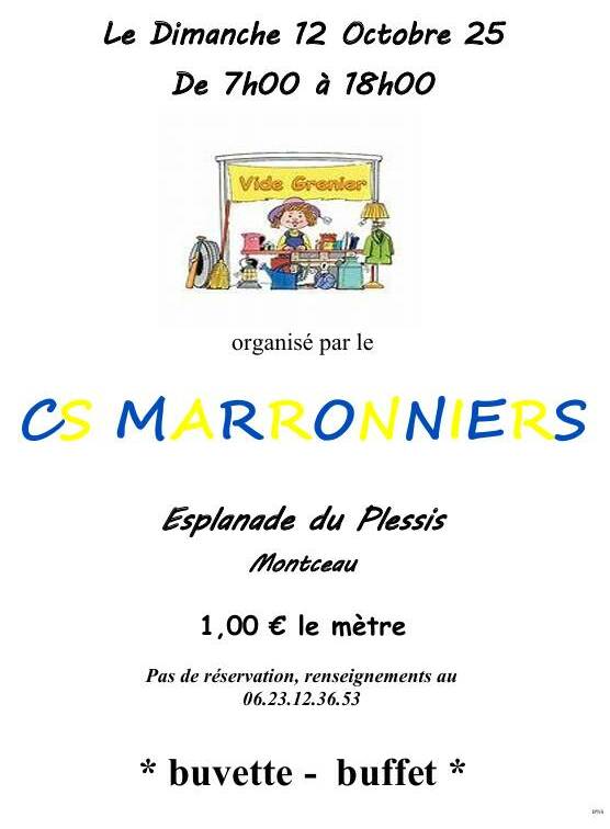Pas de réservation pour participer au vide-greniers organisé par le CS des Marronniers, dimanche 12 octobre 2025 sur l’esplanade du Plessis à Montceau-les-Mines.