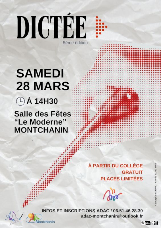Tous les documents utiles sont disponibles sur demande à l’ADAC à adac-montchanin@outlook.fr ou en téléchargement sur le site de la ville de Montchanin : https://www.ville-montchanin.fr/dictee-5eme-edition