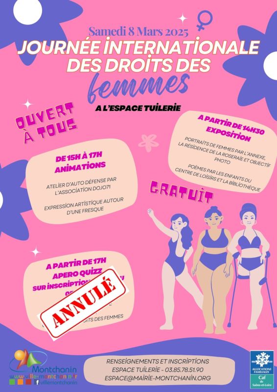 Faute de participants, nous sommes contraints d’annuler l’animation apéro quizz prévu dans le cadre de la journée des Droits des Femmes samedi 8 mars 2005 à Montchanin.