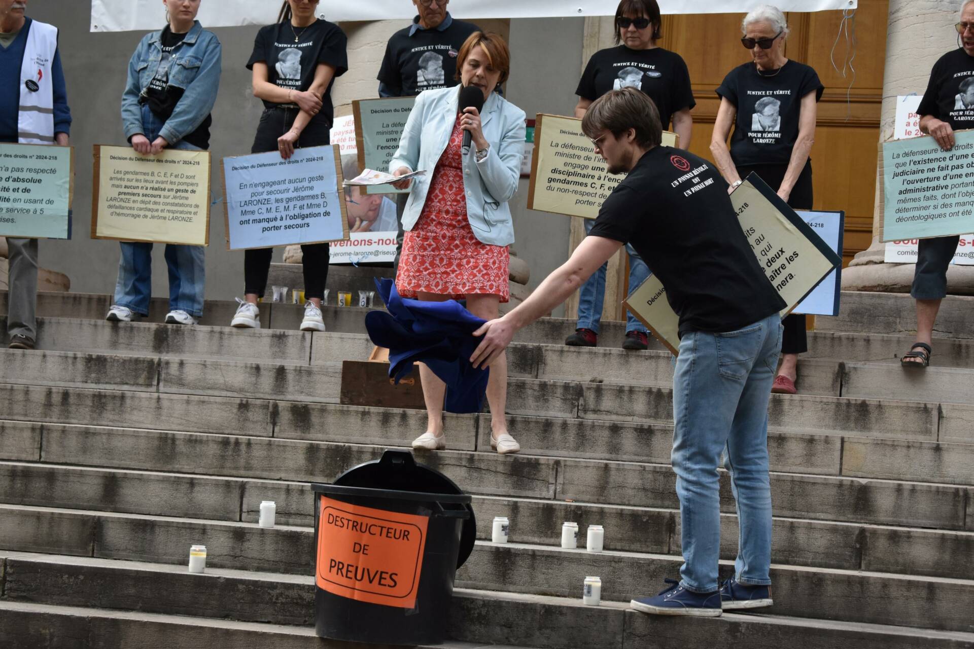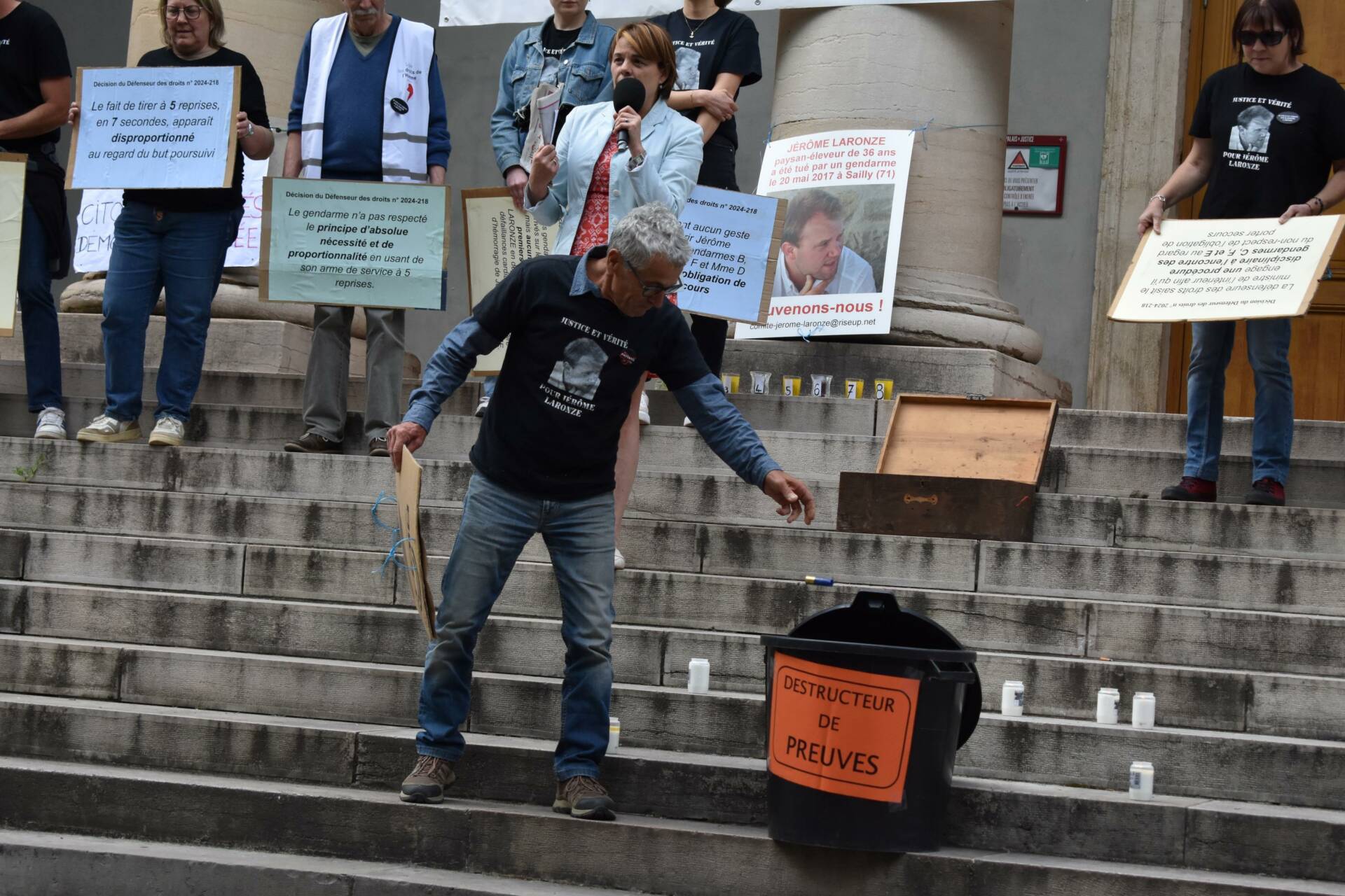 Un vibrant hommage a été rendu ce samedi 24 mai à Jérôme LARONZE, trop tôt disparu après qu’un gendarme, par un geste irresponsable, lui a ôté la vie le 20 mai 2017, 8 ans déjà. Les personnes présentes sur les marches du palais de justice de Chalon-sur-Saône ont lu tour à tour des témoignages émouvants de ce qu’à vécu Jérôme avant son décès et de ce que vit sa famille dans la recherche de la vérité depuis son décès.