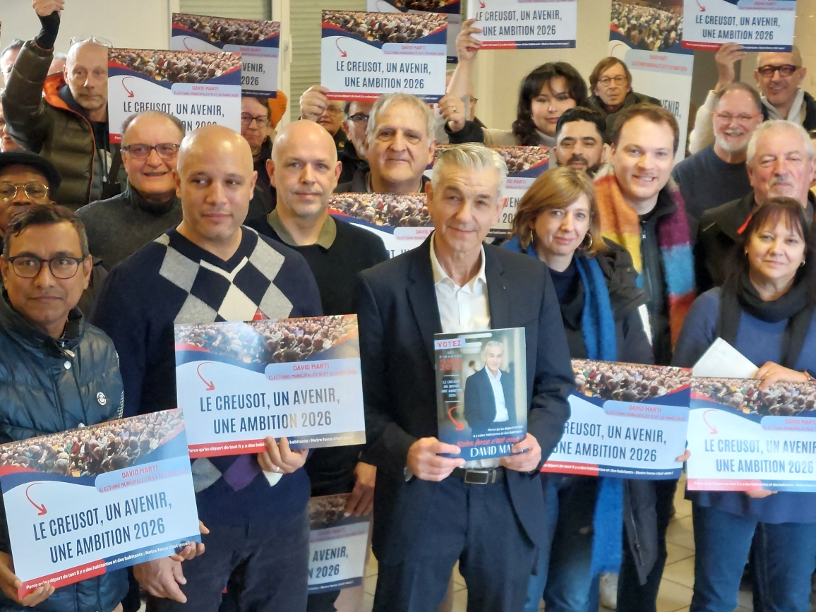 Samedi matin, salle Guynemer au Creusot, le maire sortant est à la manœuvre. Devant ses troupes dont les colistiers, il orchestre la distribution du programme de la liste « Le Creusot, un avenir, une ambition 2026 ». Huit pages en papier glacé, pensées comme une vitrine du bilan depuis 2020 et des quatre-vingt-trois engagements pour le prochain mandat. Le signal est clair, David Marti entend imposer le tempo et prendre une longueur d’avance sur ses concurrents.