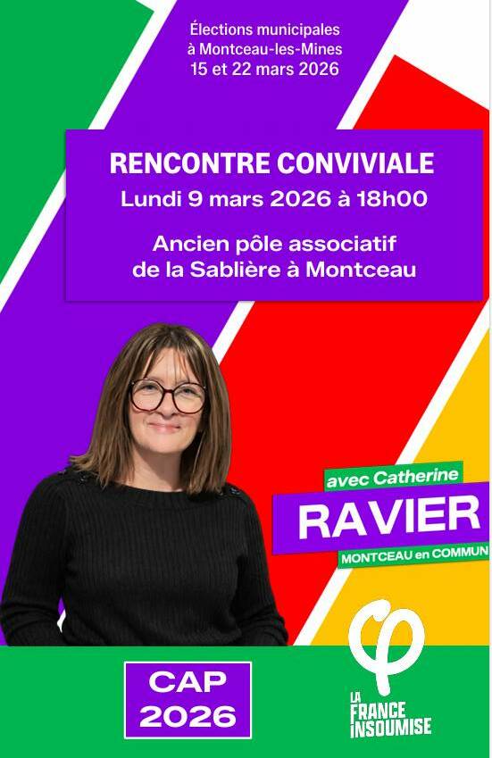 Communiqué – La liste « Montceau en commun » une alliance entre LFI et Cap 2026, poursuit ses avec les concitoyens et propose une rencontre conviviale lundi 9 mars 2026 à 18h à l’ancien pôle associatif de la Sablière à Montceau.