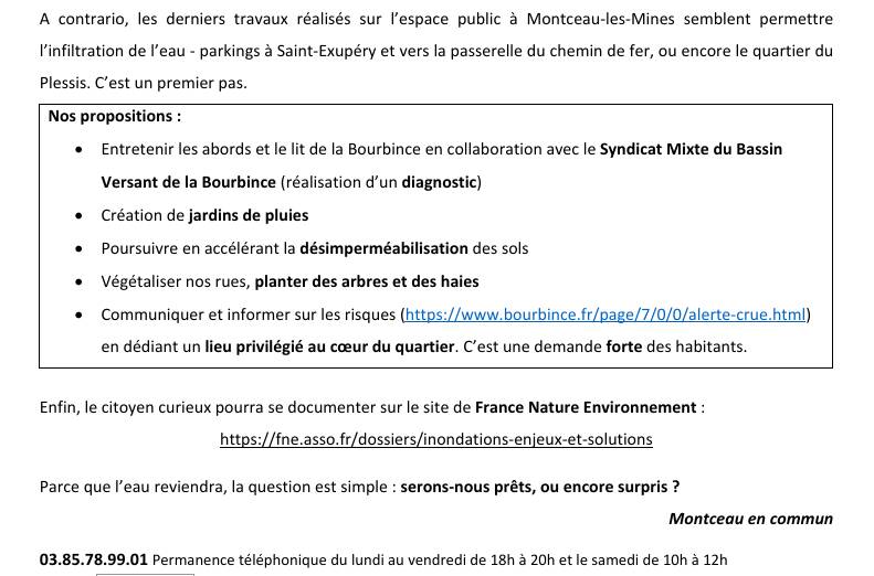 Communiqué – À la suite d’une récente visite de quartier à la Sablière, nous avons pu constater, sur le terrain, l’ampleur des difficultés rencontrées par les riverains lors des crues de la Bourbince. Les échanges avec les habitants et les observations réalisées confirment une réalité que beaucoup vivent depuis trop longtemps : les inondations ne sont plus des événements exceptionnels, mais des épisodes récurrents.
