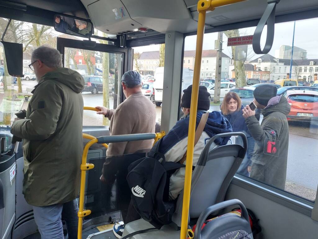 La ligne M1 traverse l’avenue Leclerc, grimpe au Bois du Verne, pousse jusqu’au Bois Garnier, puis repart en sens inverse. Vers 10 h, le bus est presque plein. Jour de marché oblige.