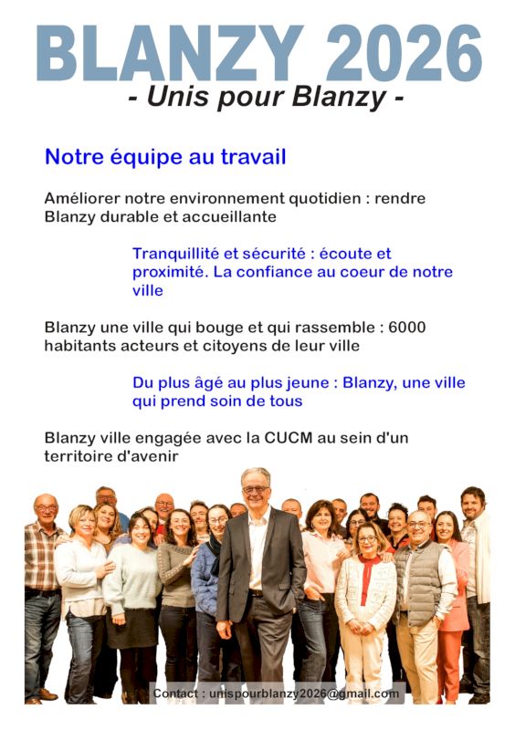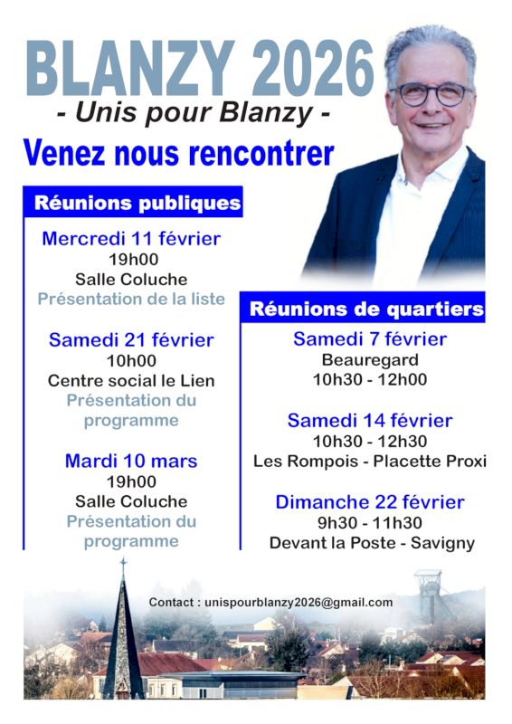 Outre cette date clé, « Unis pour Blanzy » a prévu de rencontrer les Blanzynois au cours de réunions publiques et dans les quartiers (voir ci-dessous) :