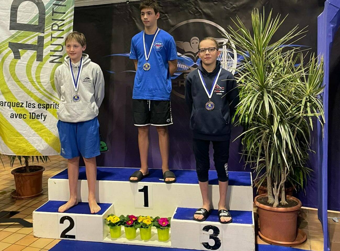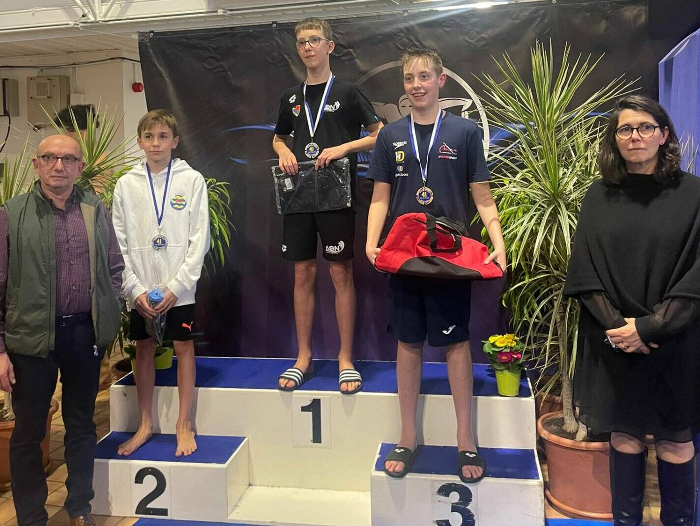 Très belle compétition également pour Louis Kostine, 2ème du 50 m nage libre et 3ème du 100 m nage libre.