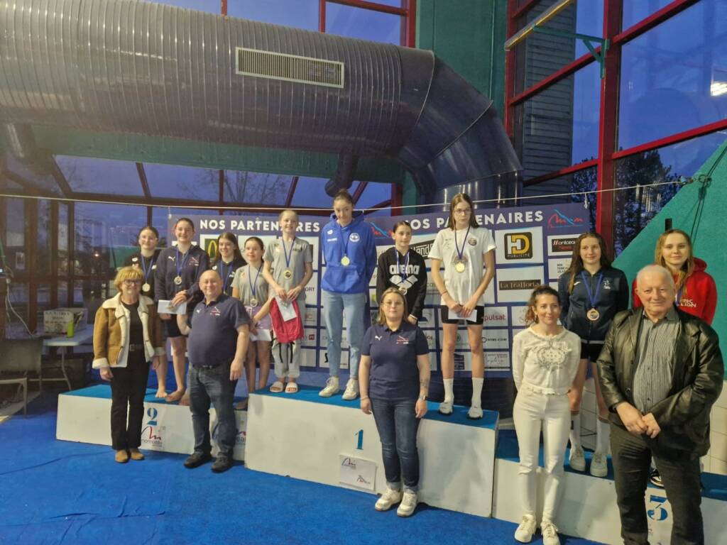 Et enfin chez les Juniors, Noémie P. a obtenu 2 podiums sur le 800 nage libre et le 400 nage libre où elle arrive 2ème et 1ère. De plus, elle s’est qualifiée sur le 200 nage libre pour les championnats régionaux Juniors qui auront lieu à Chalon les 4, 5 et 6 avril. Elle rejoindra Johann C., Maélie T.et Anatole S. qui se sont qualifiés, avec leurs temps respectifs effectués lors de différentes compétitions. Jules K. obtient la 3ème place à la finale du 50 brasse aux côtés d’Anatole S. qui lui monte sur la 2ème place. Ce dernier prendra également la 1èreplace au 100 brasse et la 2ème au 200 brasse. Enfin Maélie T. a fini 1ère au 50 brasse et 2ème au 100 brasse.