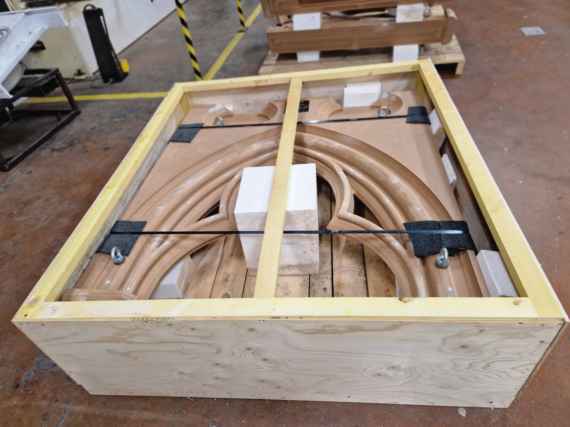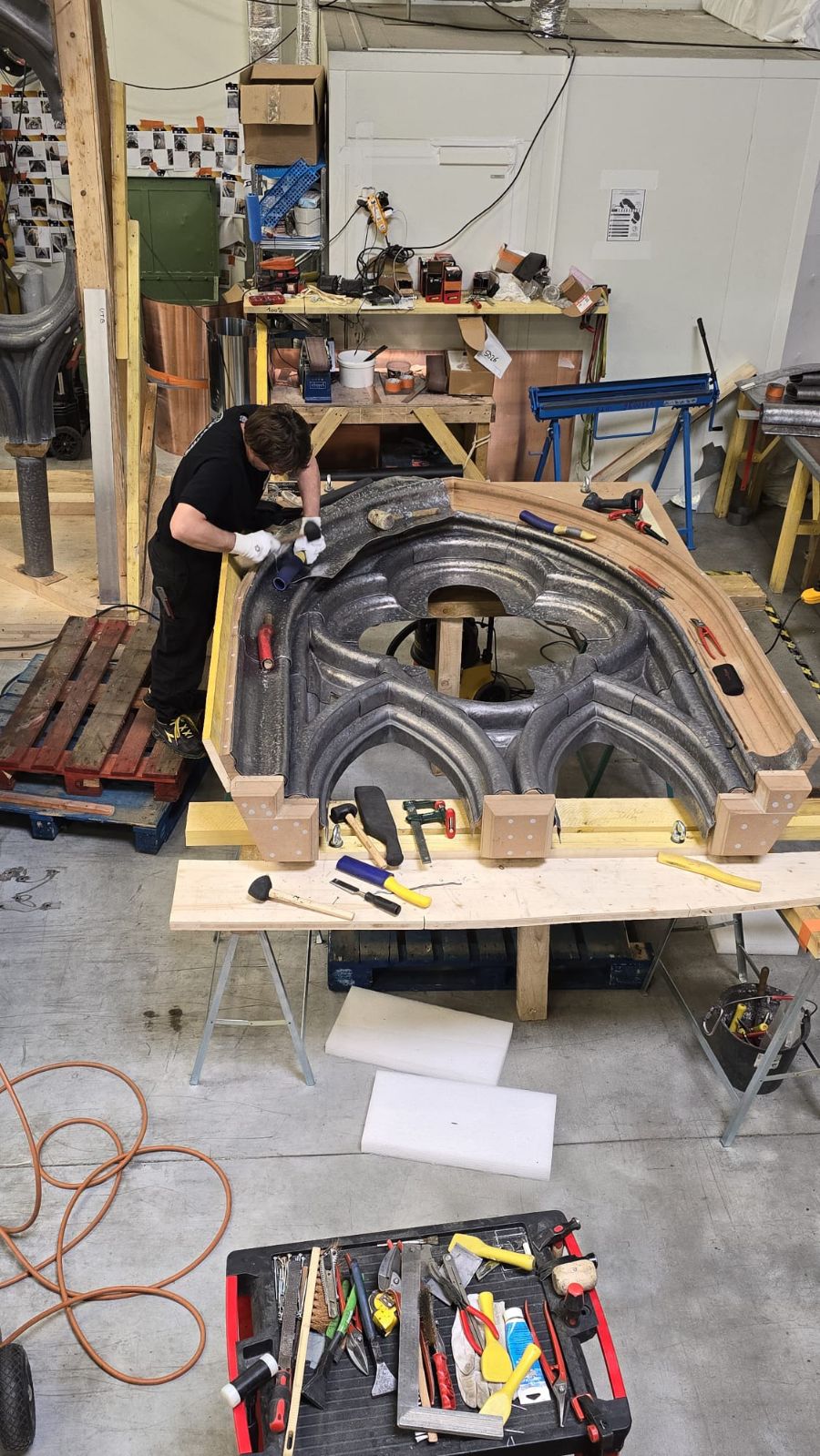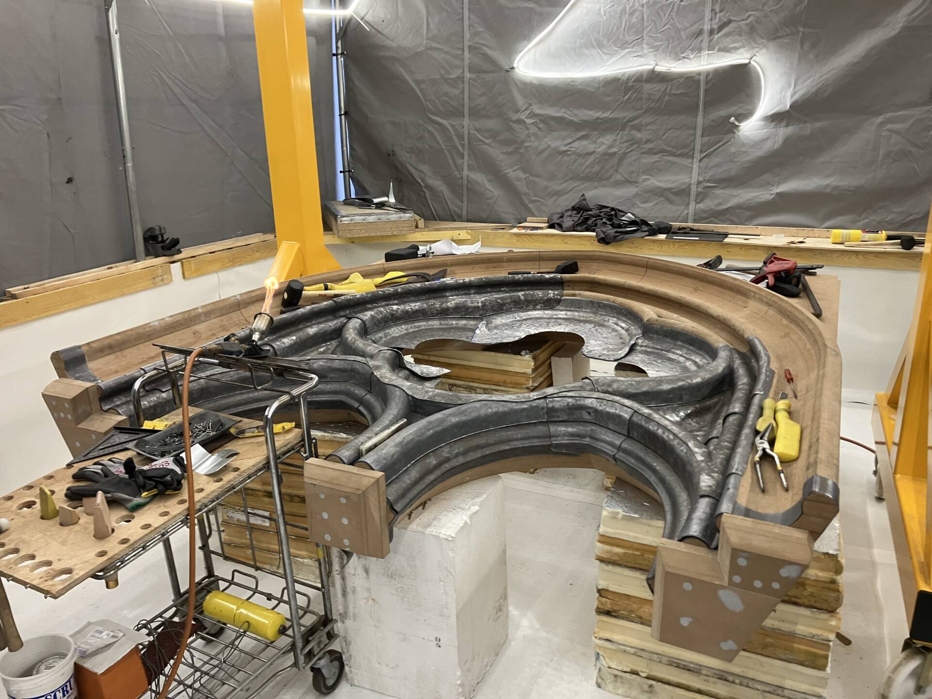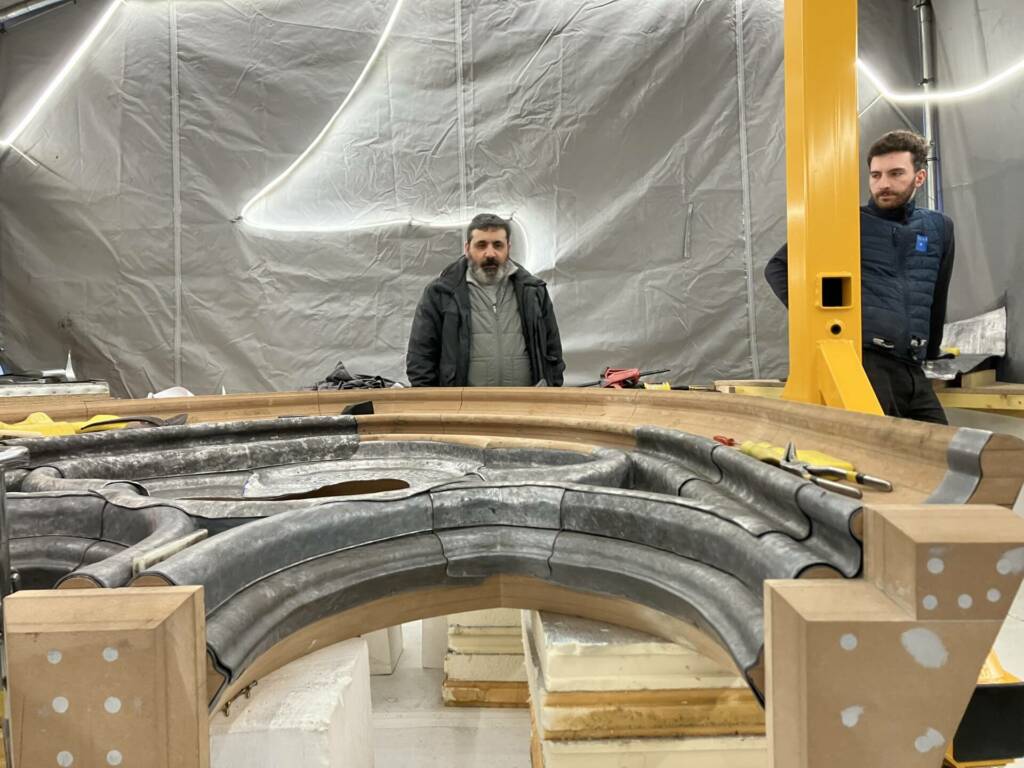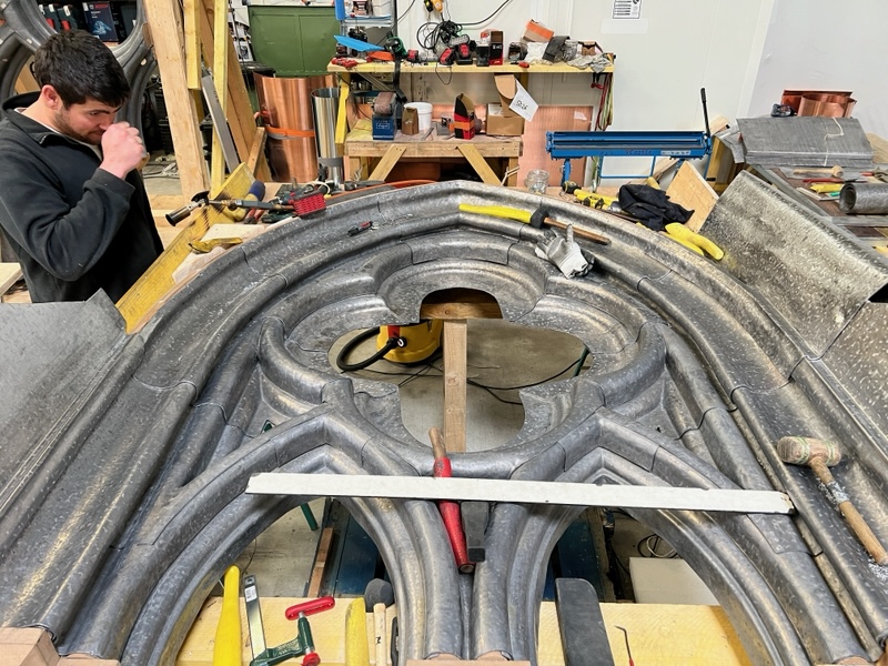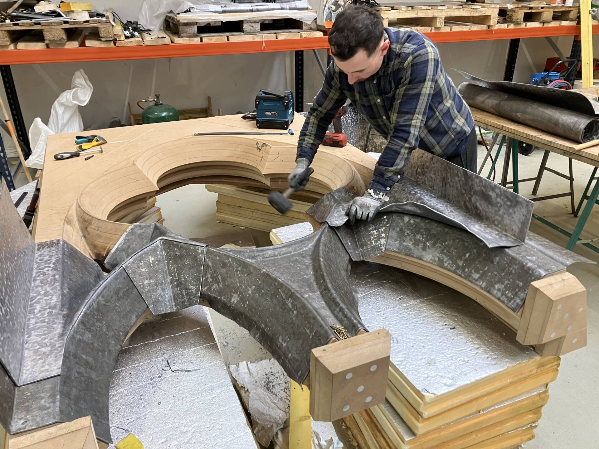 Grâce à ces gabarits _ une arche nécessitant entre 60 et 80 heures d’usinage _ les couvreurs, répartis entre quatre entreprises, ont pu les recouvrir de feuilles de plomb de 3,5 millimètres d’épaisseur. « On appelle ça le planage : un millimètre par siècle », révèle Pascal Payen-Appenzeller.