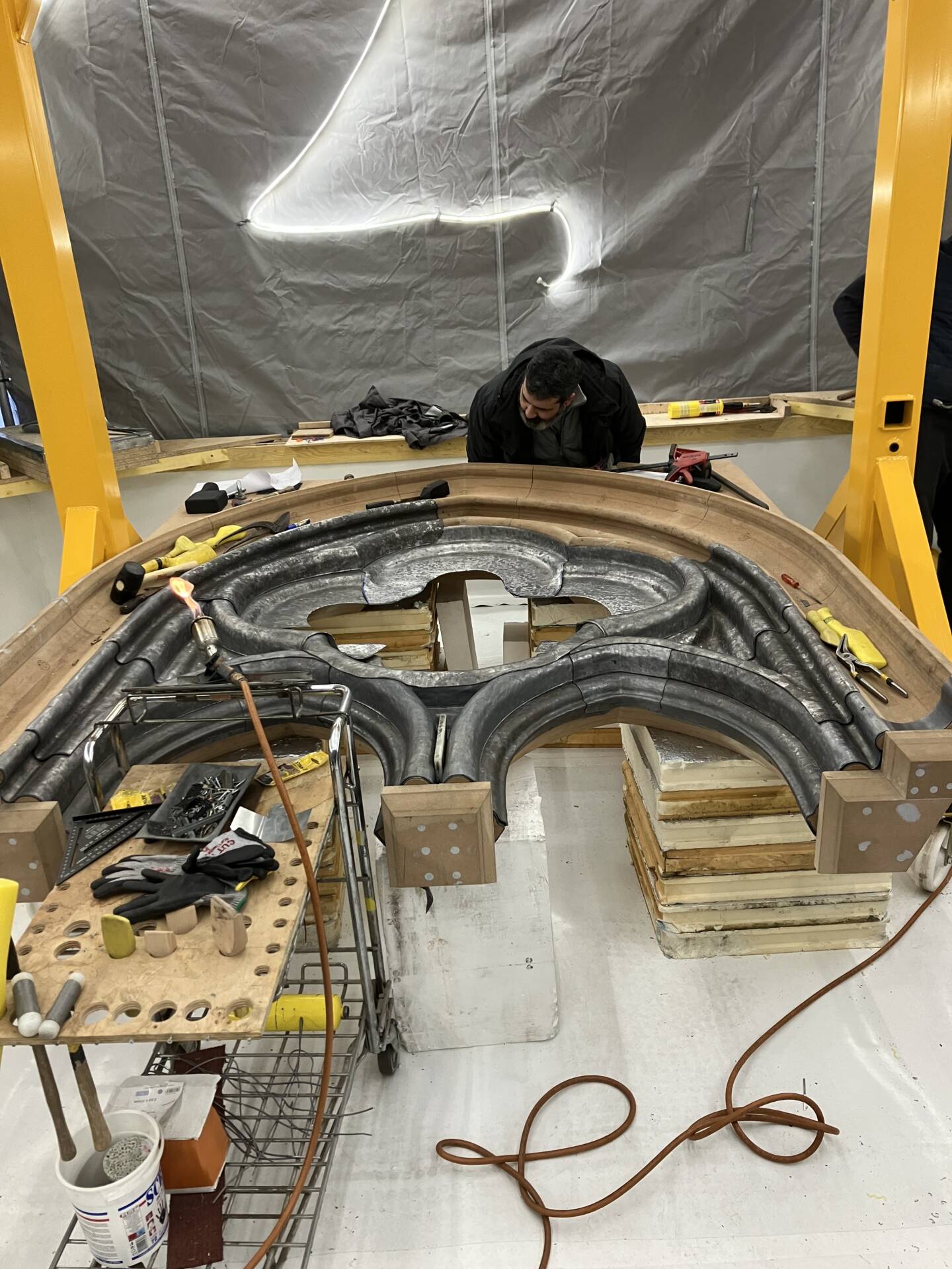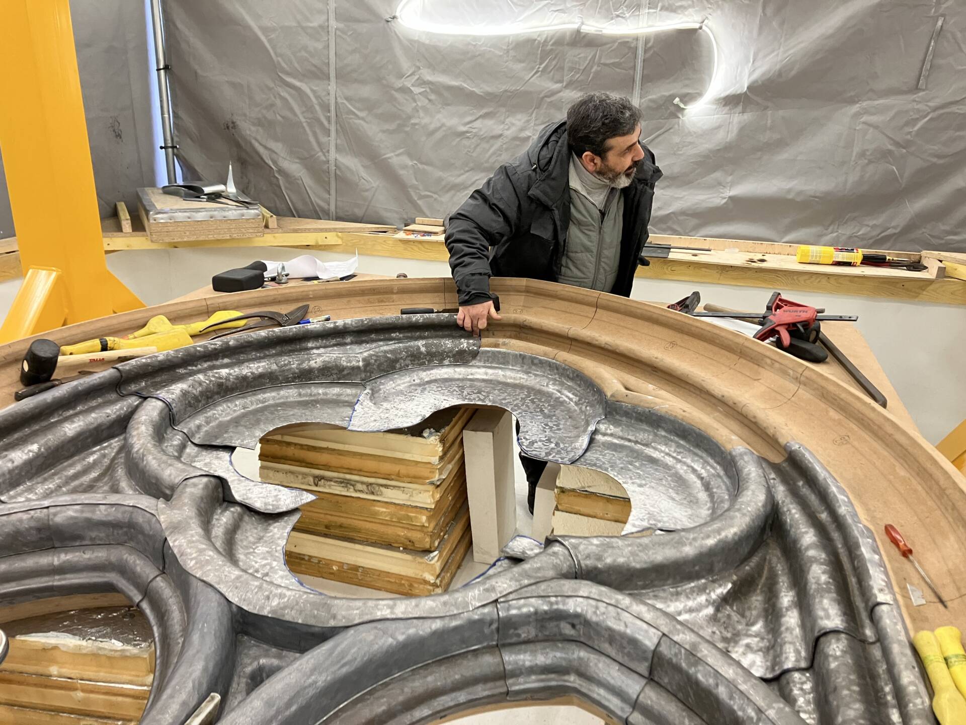 Face à cette fougue, Jean-Pierre Julien reste de marbre, concentré sur son cap. Son entreprise, tournée vers la fabrication de moules pour l’industrie automobile, s’ouvre désormais aux grands chantiers patrimoniaux. En septembre 2019, un charpentier-couvreur le contacte. « Il nous demande d’usiner des pièces de charpente en isorel afin de former les tôles de plomb dans son atelier », raconte-t-il.