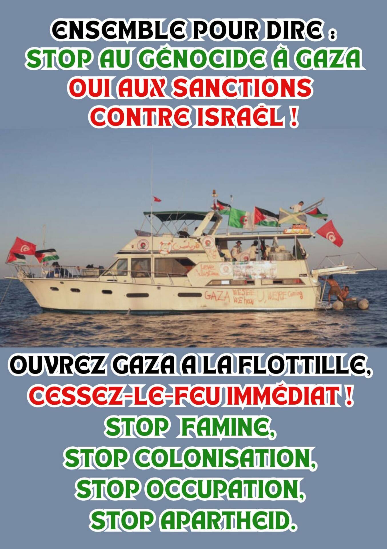 Comme dans toute la France, aujourd’hui et demain, l’AFPS et de nombreuses organisations appellent à se rassembler pour obtenir la libération sans condition de tous les membres de la flottille, et naturellement exiger encore et encore le cessez le feu immédiat et permanent , des sanctions contre ce régime voyou.