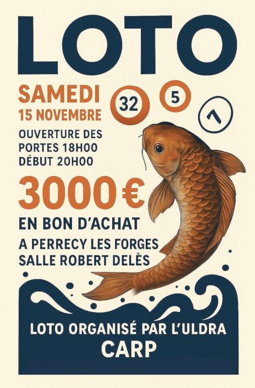 Le loto qui se déroulera la samedi 15 novembre 2025 à Perrecy les Forges, salle des fêtes Robert Delès, est organisé par l’Uldra Carp.