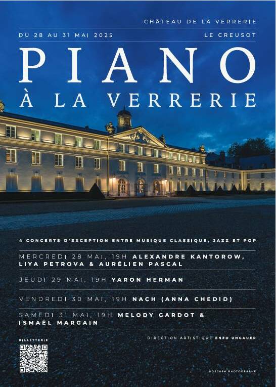 Le Creusot accueillera la première édition du festival Piano à la Verrerie, du 28 au 31 mai 2025. Cet événement unique, qui promet de faire découvrir au public local le piano sous toutes ses formes se tiendra au château de la Verrerie. Pendant quatre jours, ce lieu historique accueillera une programmation prestigieuse, mettant à l’honneur le piano dans toute sa richesse, du classique au jazz en passant par la pop. Un rendez-vous incontournable pour les amateurs de musique et de patrimoine.