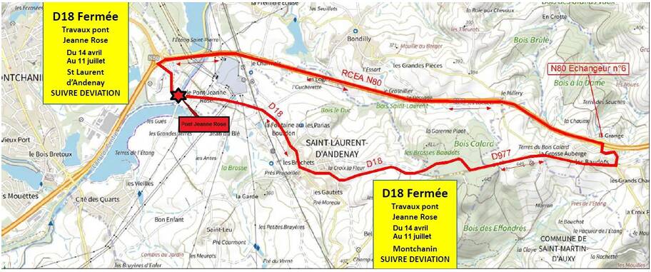 - la RN80 à hauteur d’Ecuisses, Saint-Laurent-d’Andenay et Montchanin.