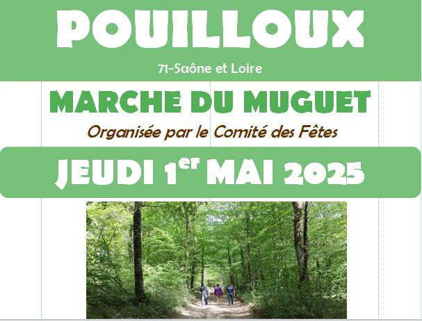 Le comité des fêtes de Pouilloux organise le jeudi 1er mai 2025 sa traditionnelle marche du muguet.
