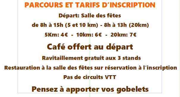 Départ et arrivée à la salle des fêtes, trois parcours 5-10-20 km. Pas de circuit VTT.